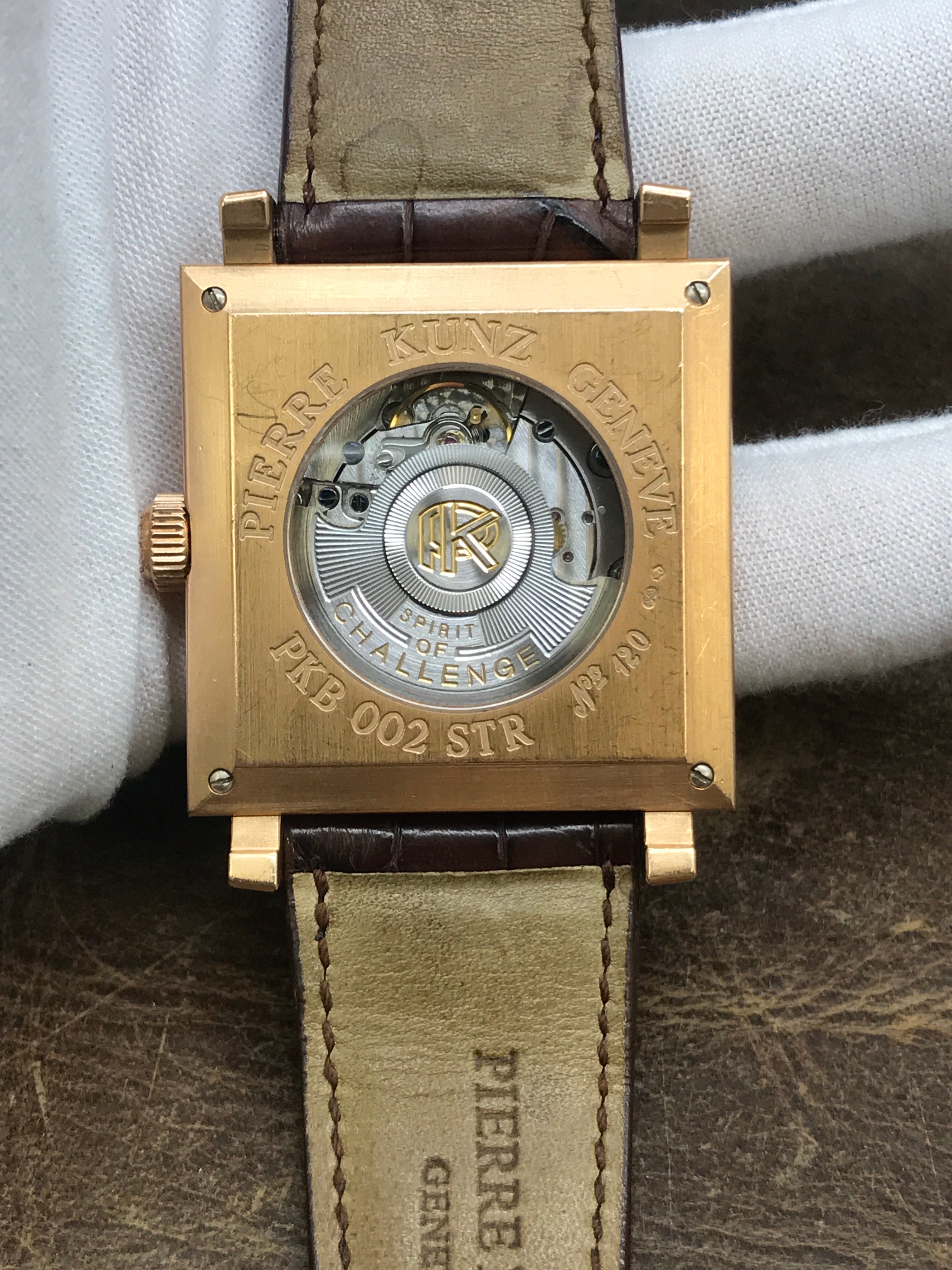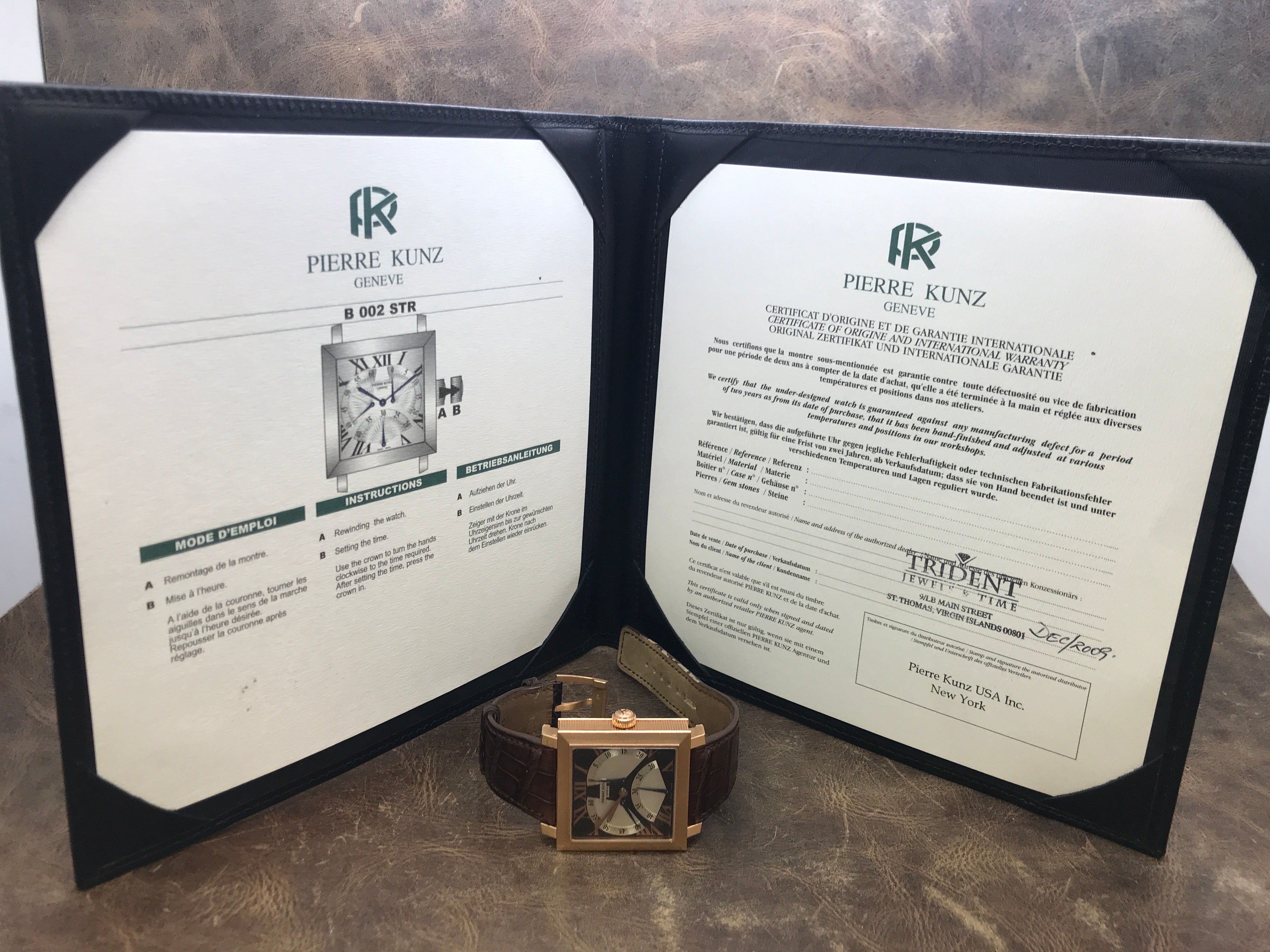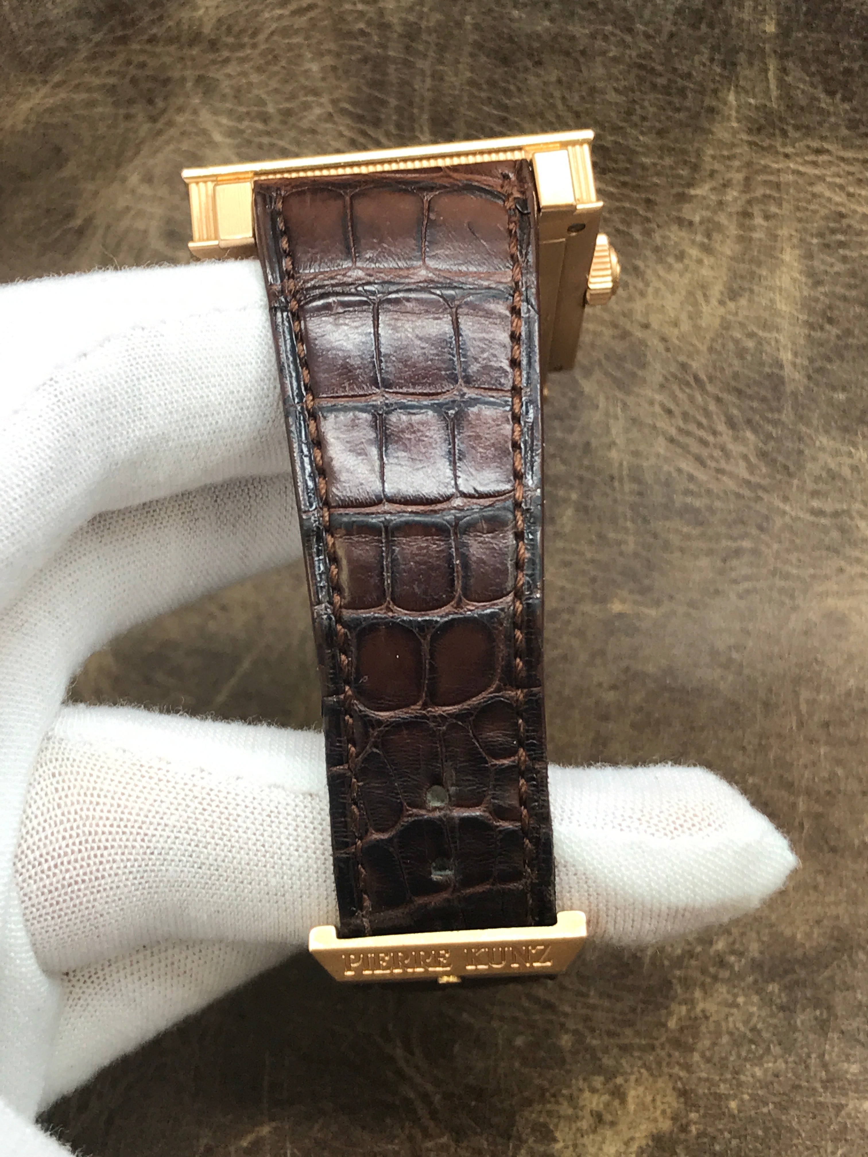 This pre-owned Pierre Kunz Triple Retrograde PKB002STR is in excellent condition and comes with: original & matching papers dated 2009. Max wrist size: 8.25 in.