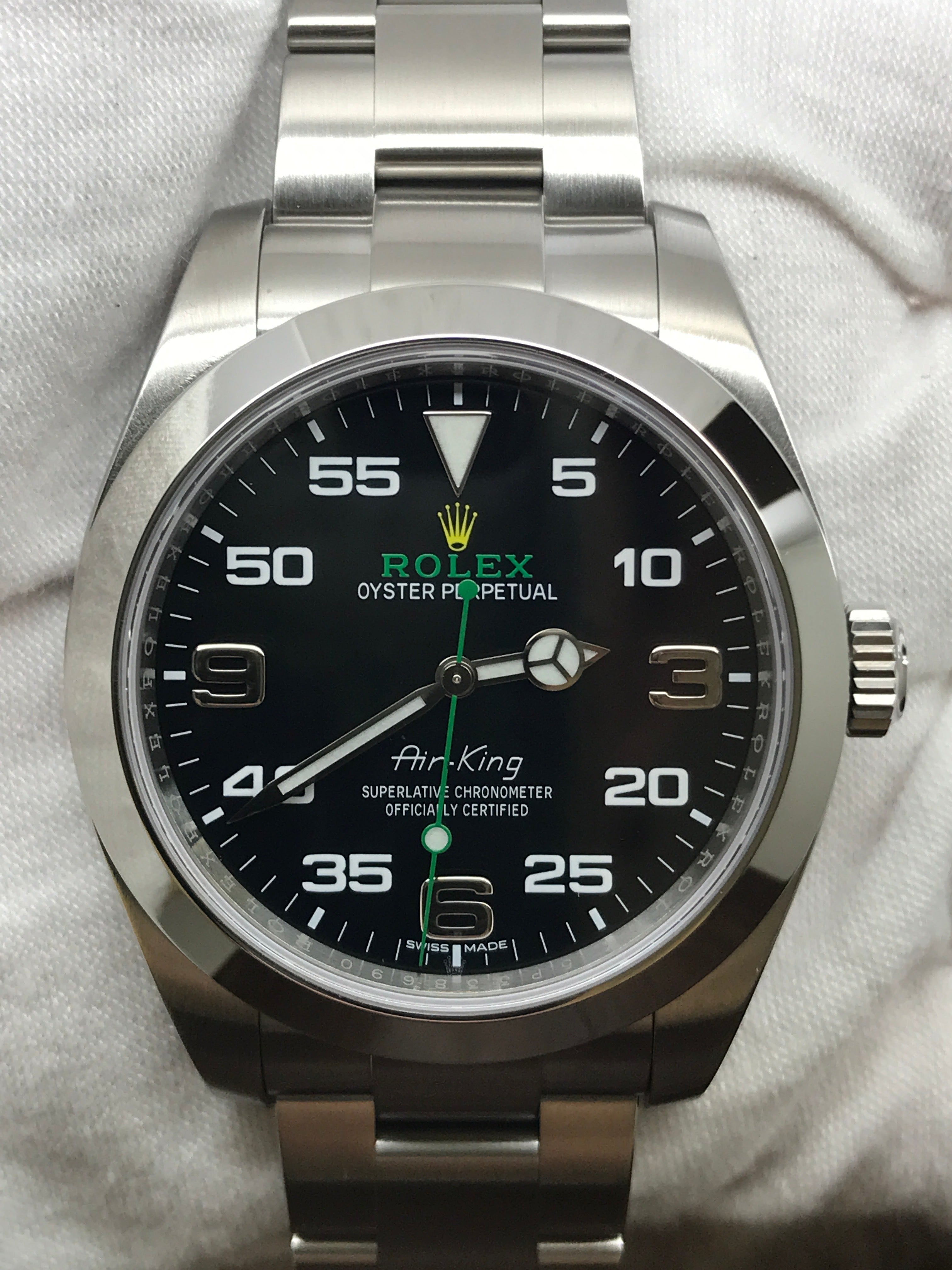 The Rolex Air-King was released amongst a few other air-borne Rolex models immediately following the Second World War. These models were designed with the British Rolay Air Force in mind, all situated as stunning and practical timepieces for pilots. The Air-King, released in 1945, was part of a broader Air collection including the Air-Lion, the Air-Giant, and the Air-Tiger. The Air-King was superior to them all, and its reign is proved through its longevity.