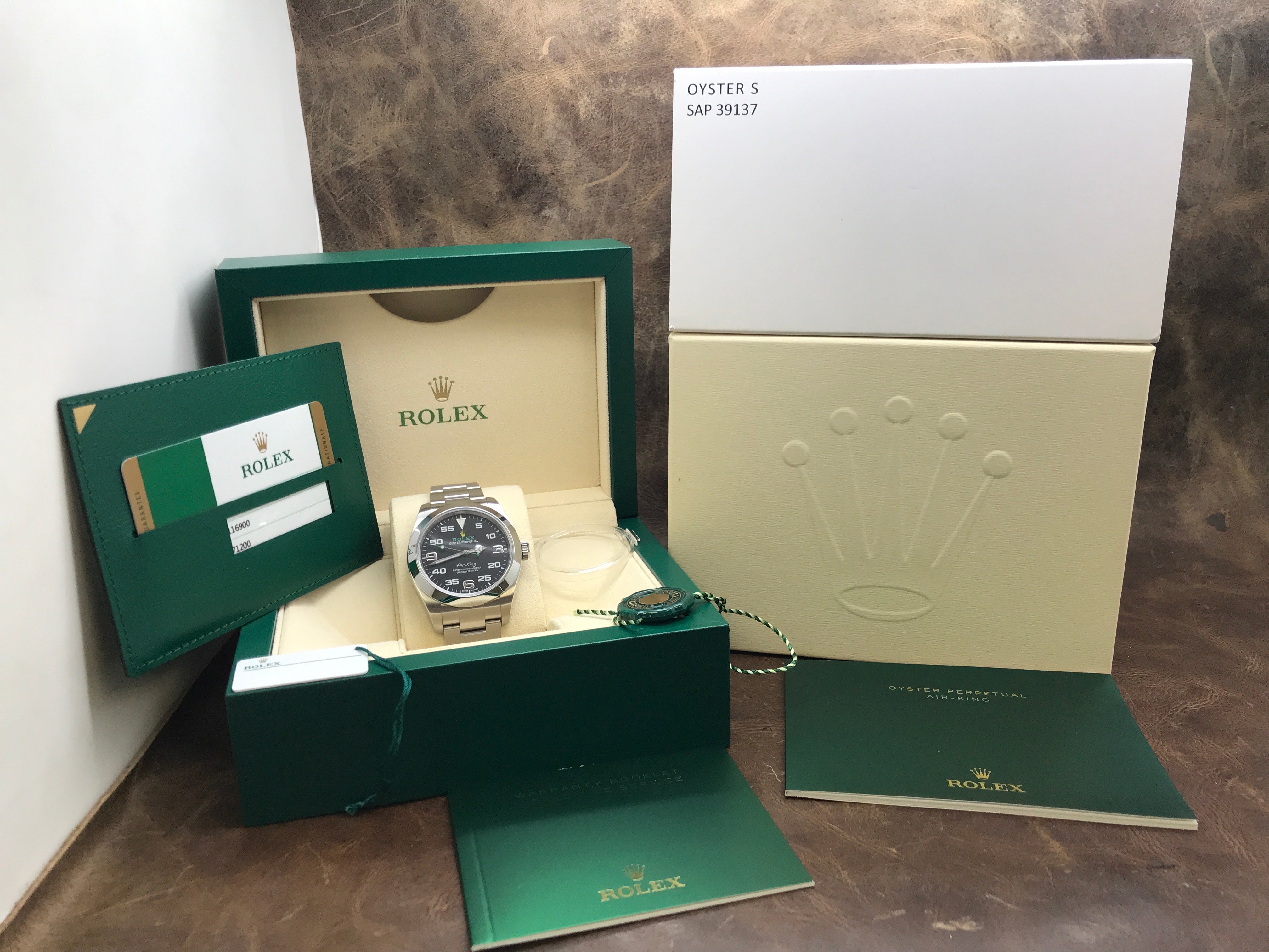 This pre-owned Rolex Air-King 116900 is in mint condition and comes with: original Rolex double box, tags, booklets & matching warranty card dated 2018. Max wrist size: 7.5 in.