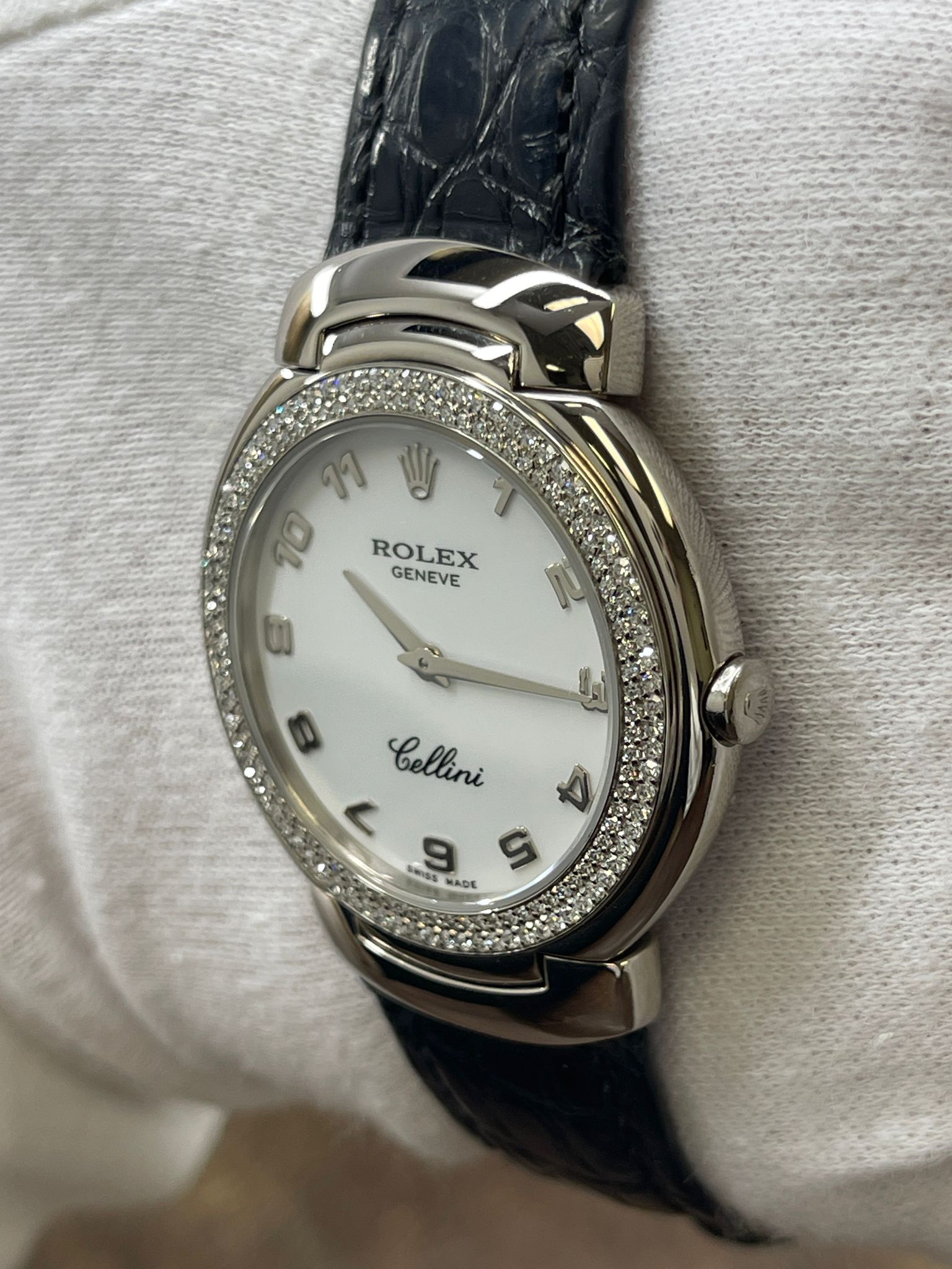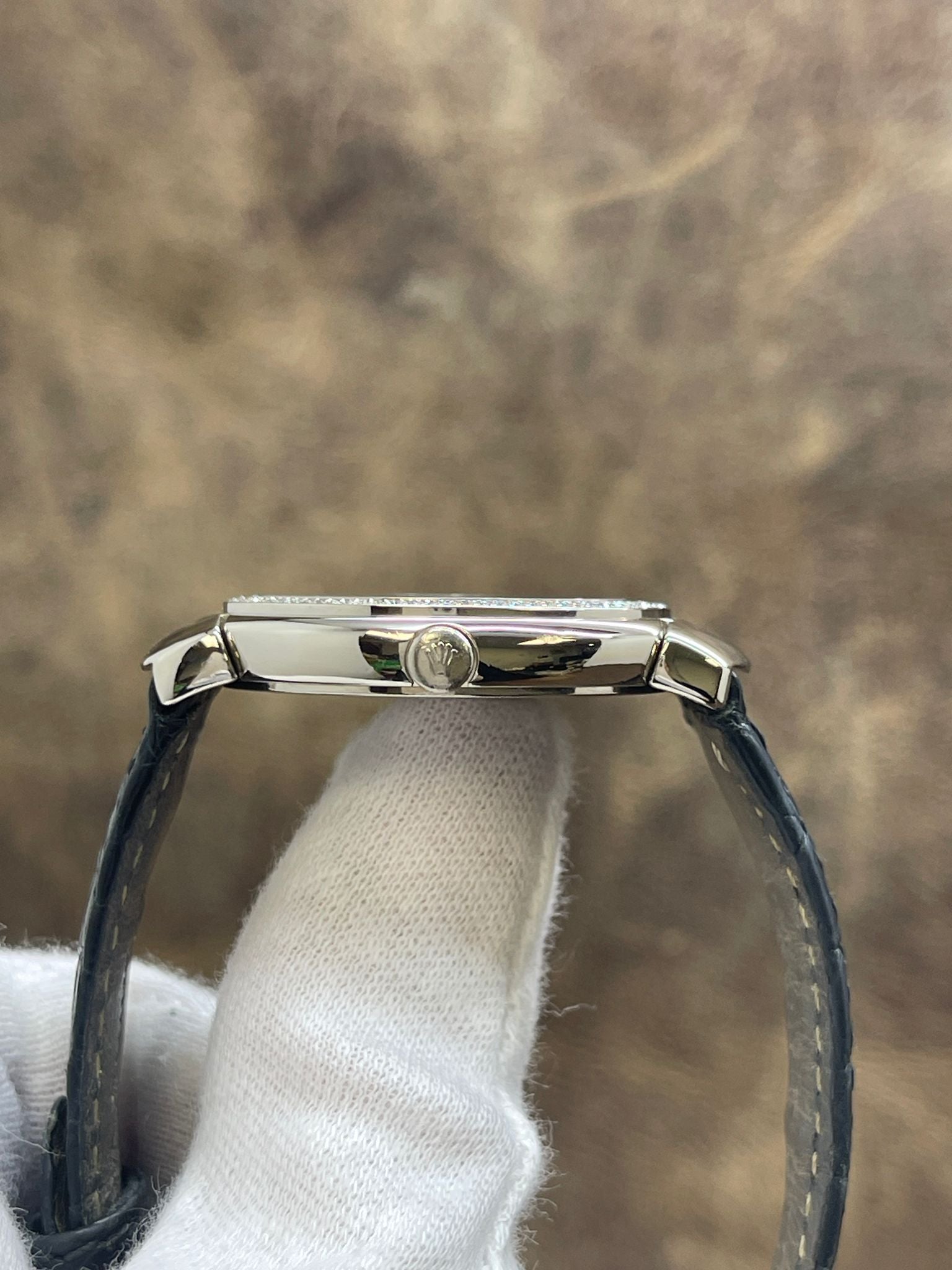This pre-owned Rolex Cellini Cellissima 33mm 6681 is in excellent condition and comes with: NO box or papers. The watch comes with a factory diamond bezel and is NOT waterproof. Max wrist size: 7.25 in.