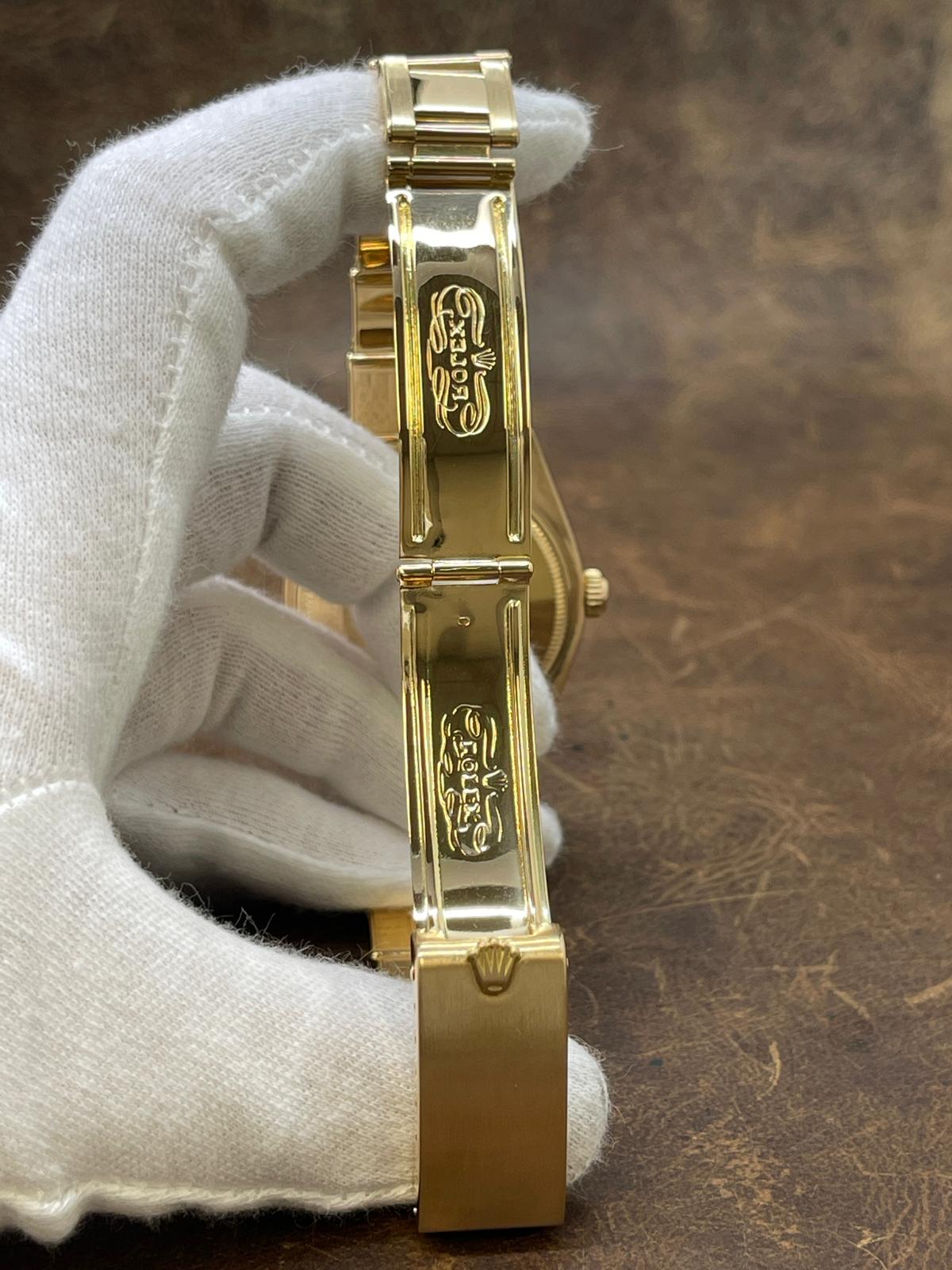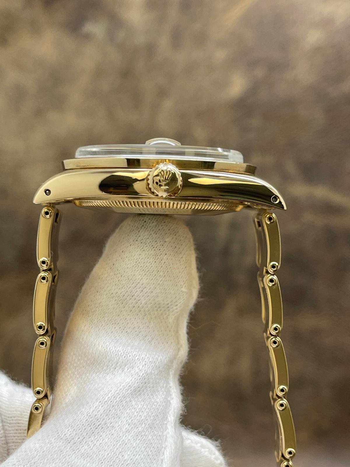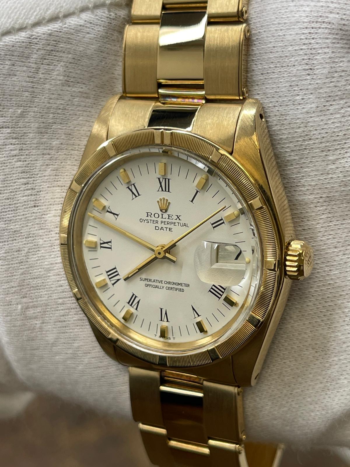 This pre-owned Rolex Date 34mm 18K Yellow Gold 1501 is in excellent condition and comes with: original Rolex double box only. The watch is NOT waterproof. Max wrist size: 7.5 in.