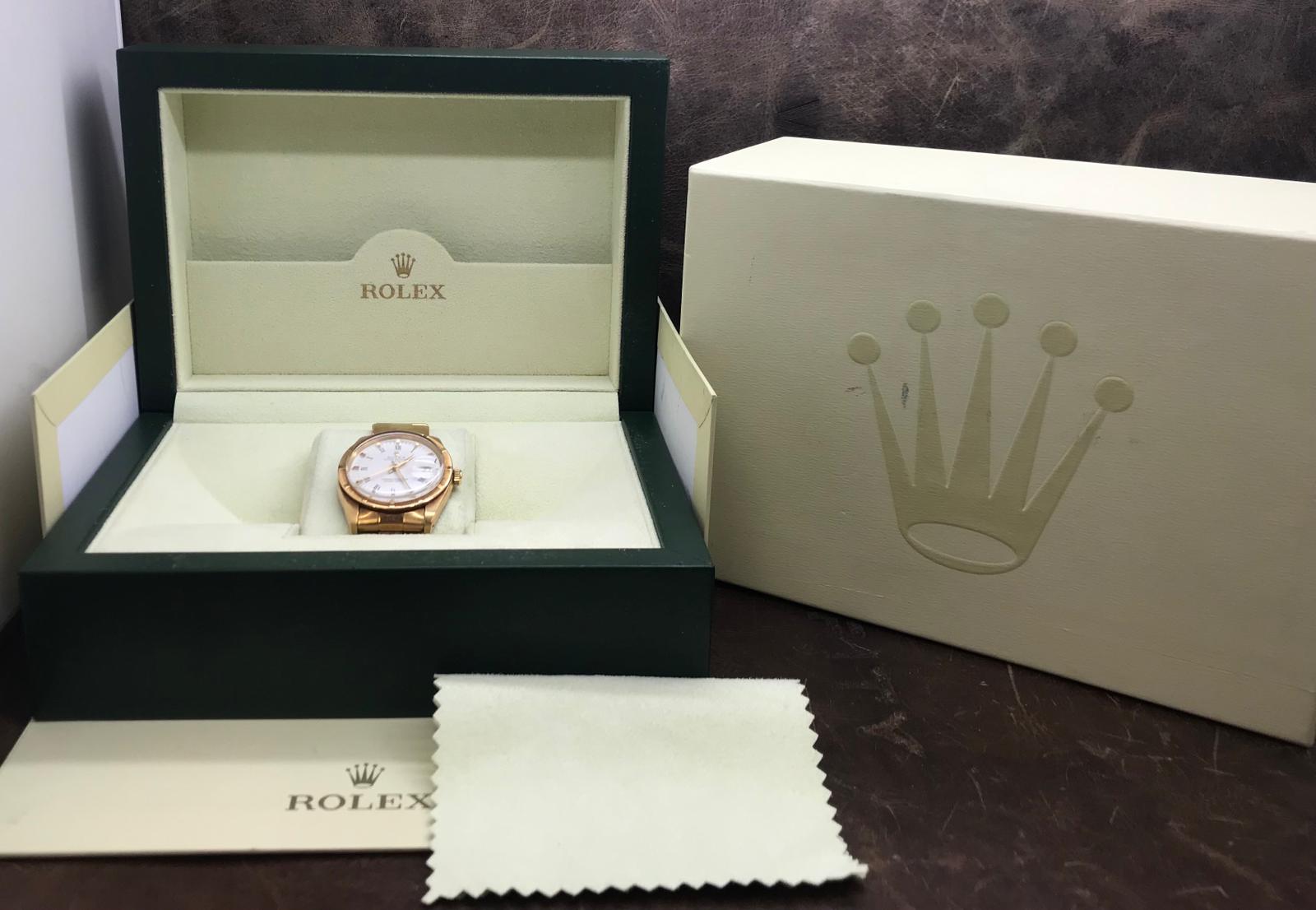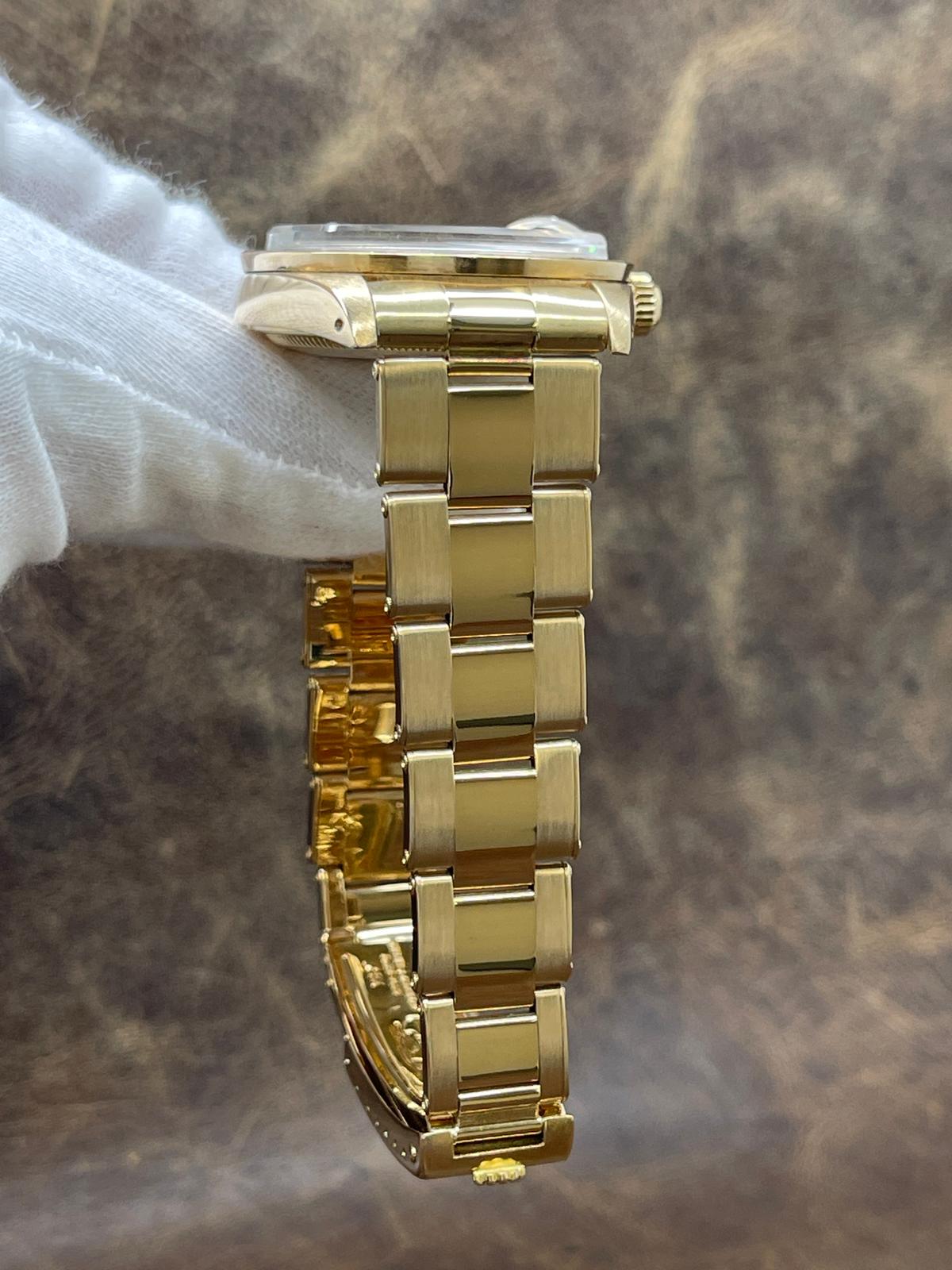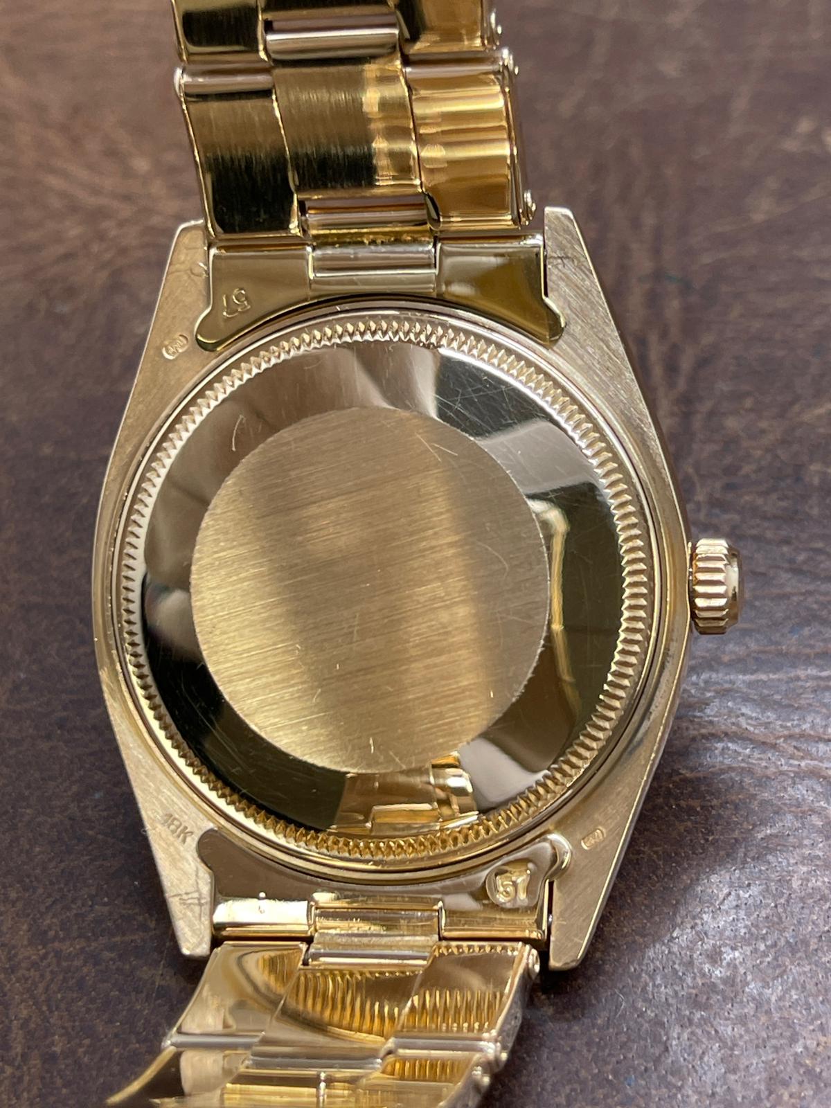 This pre-owned Rolex Date 34mm 18K Yellow Gold 1501 is in excellent condition and comes with: original Rolex double box only. The watch is NOT waterproof. Max wrist size: 7.5 in.