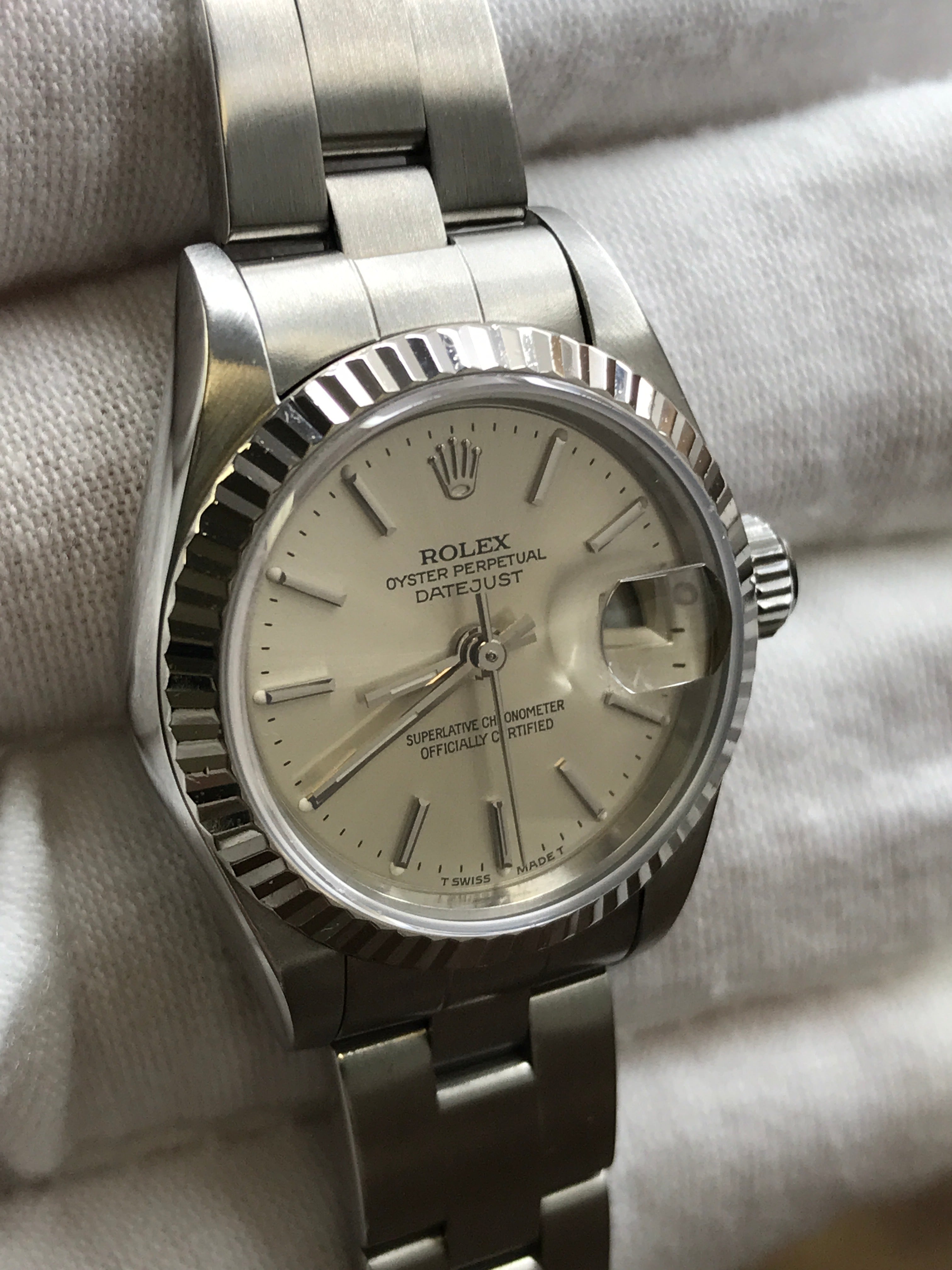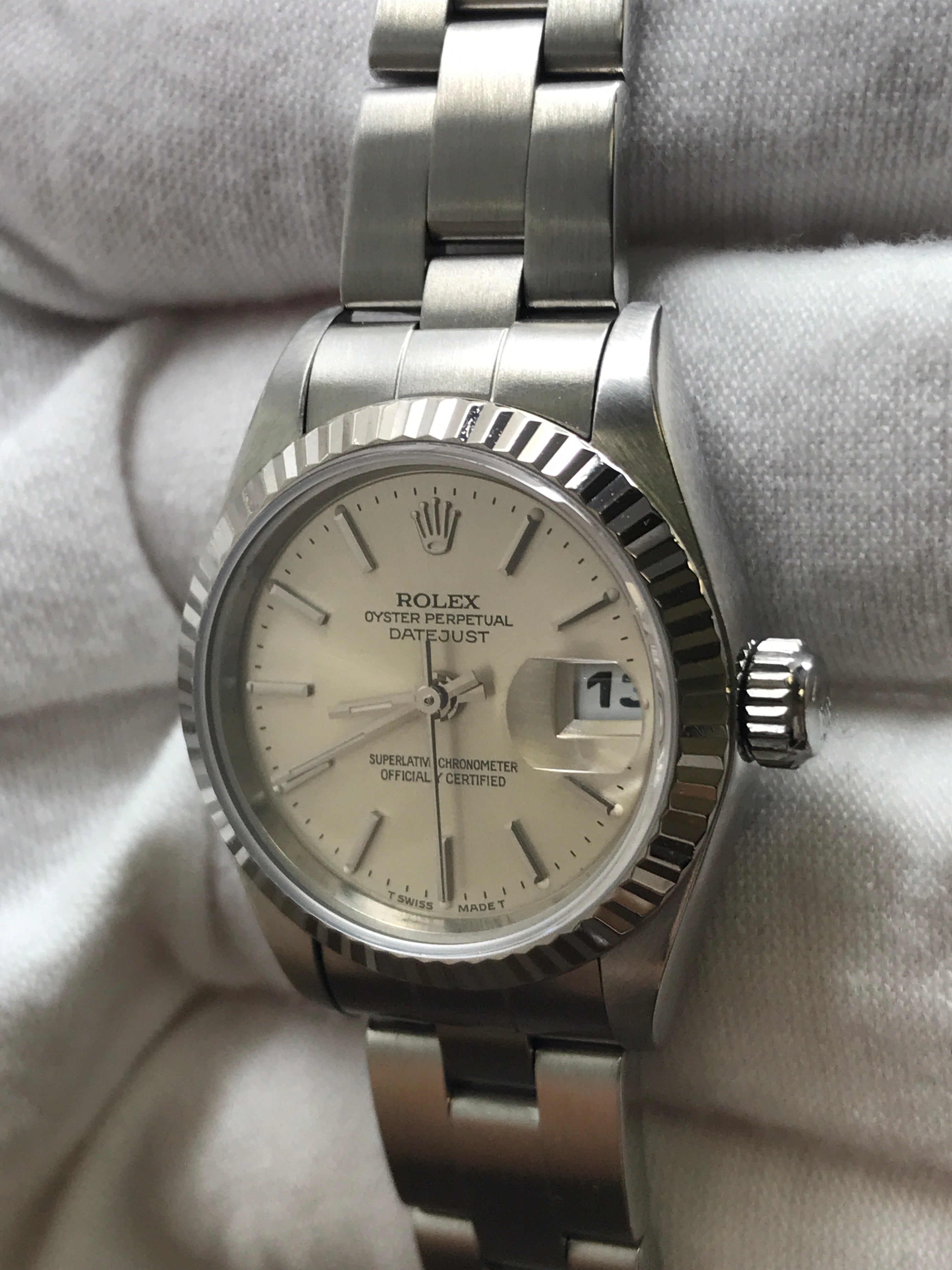 This pre-owned Rolex Datejust 26mm 69174 is in excellent condition and comes with: NO box or papers. Max wrist size: 6 in.
