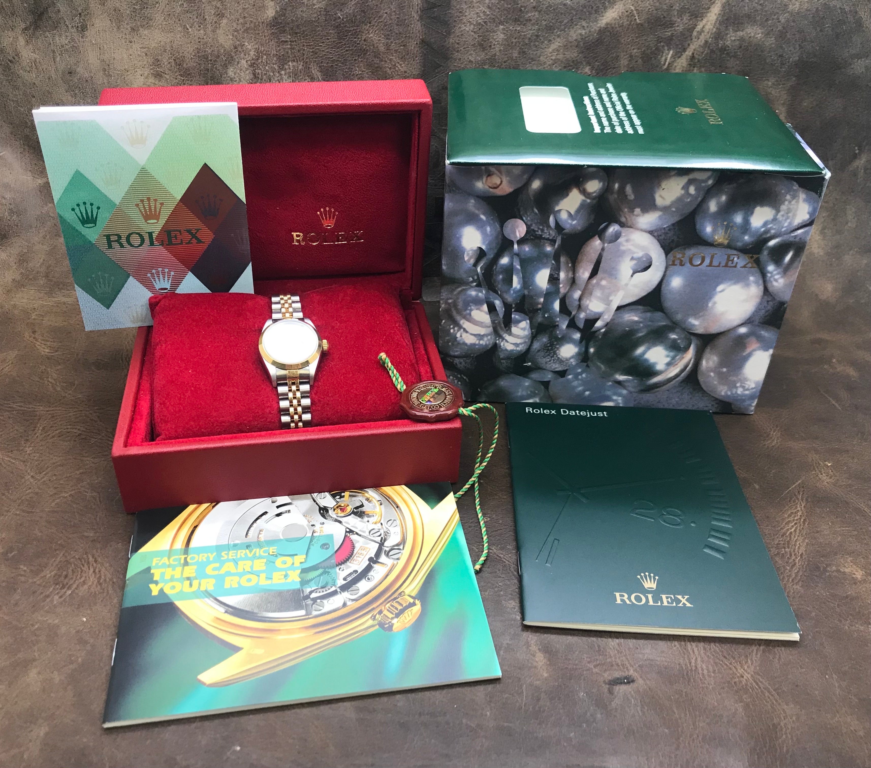 This pre-owned Rolex Datejust 26mm 79163 is in mint condition and comes with: original Rolex double box, tag, booklets and matching warranty papers dated 2003. Max wrist size: 6.5 in.
