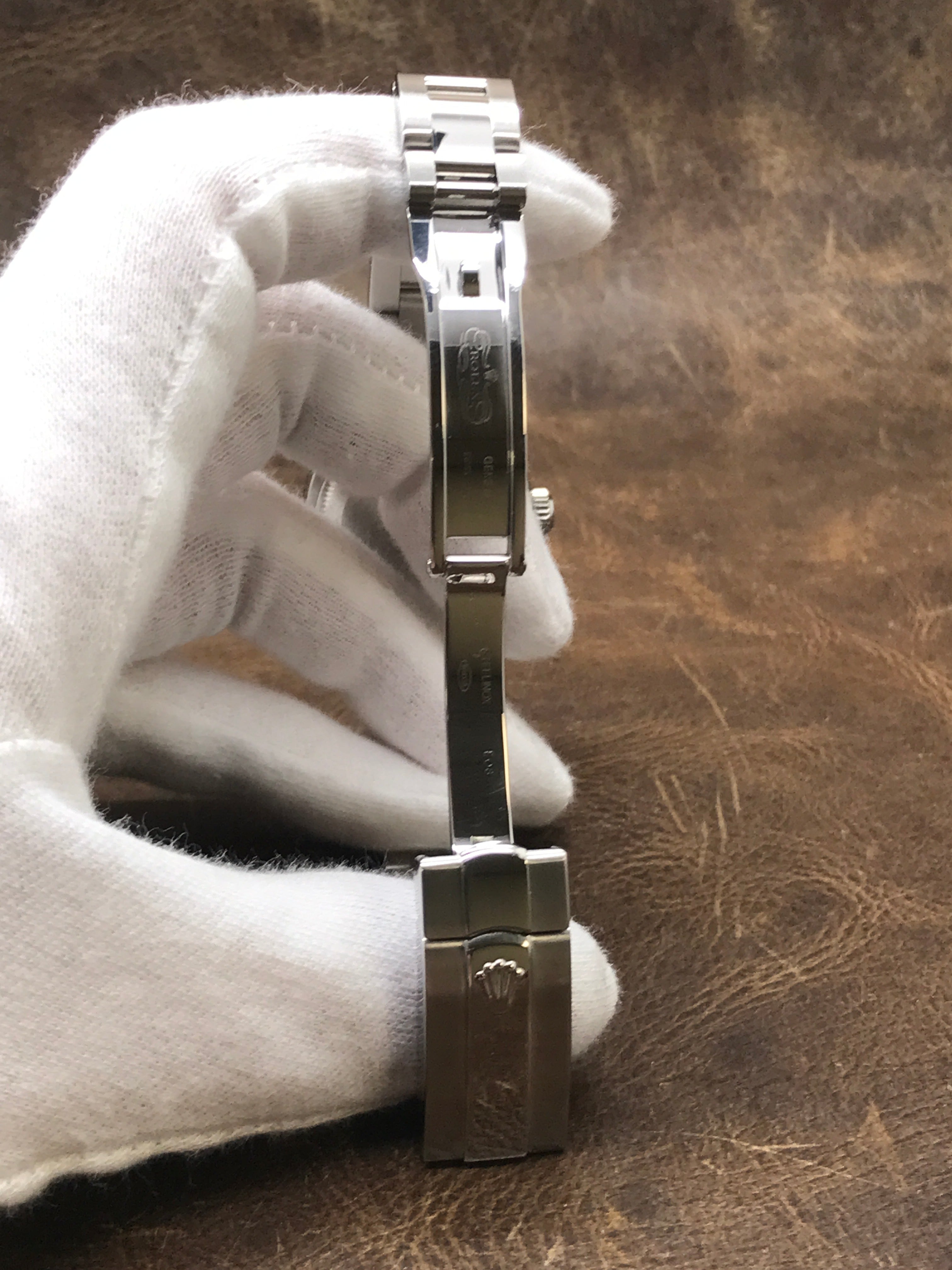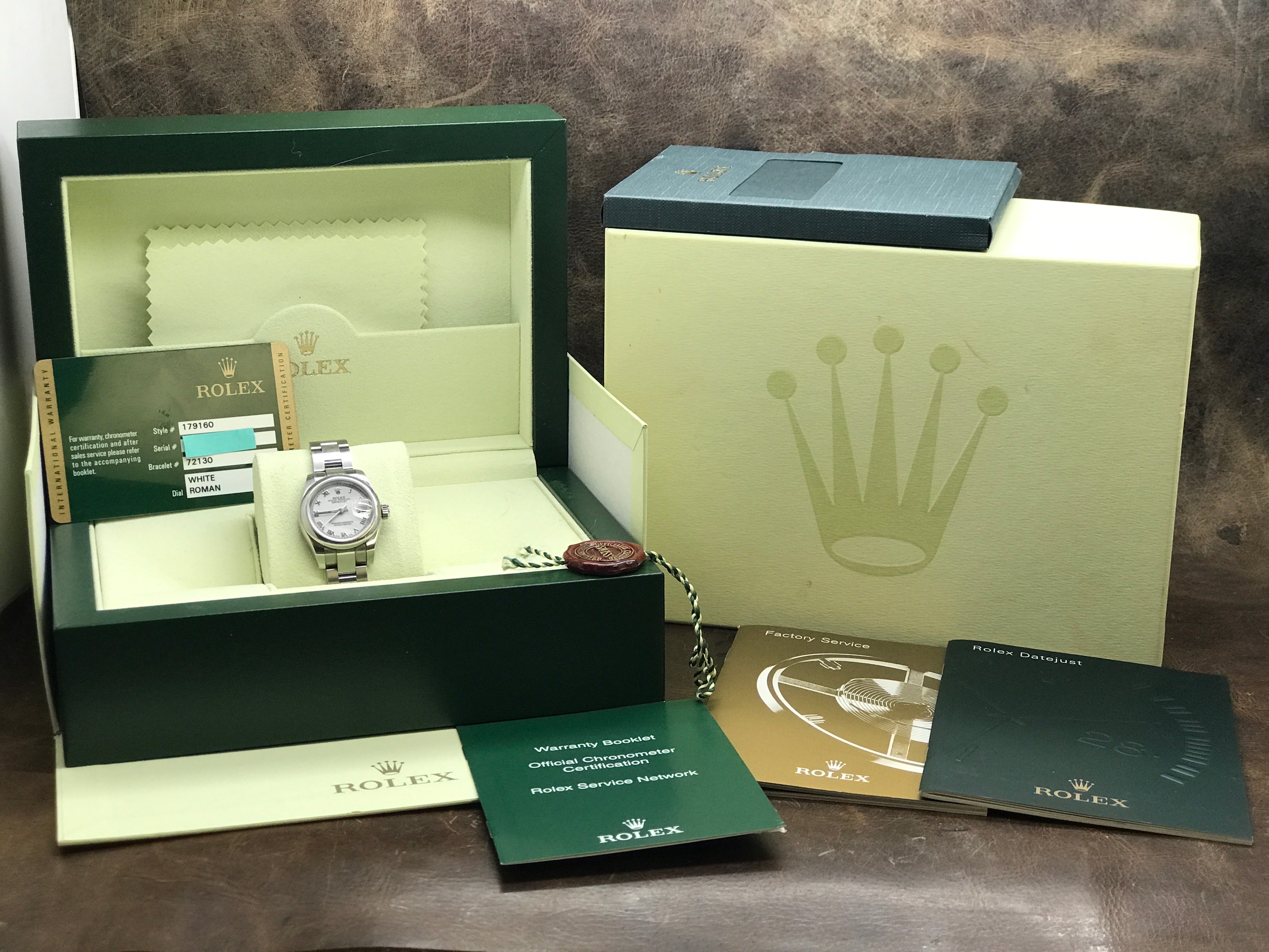 This pre-owned Rolex Datejust 26mm 179160 is in mint condition and comes with: original Rolex double box, tag, booklets and matching warranty card dated 2014. Max wrist size: 6.5 in.