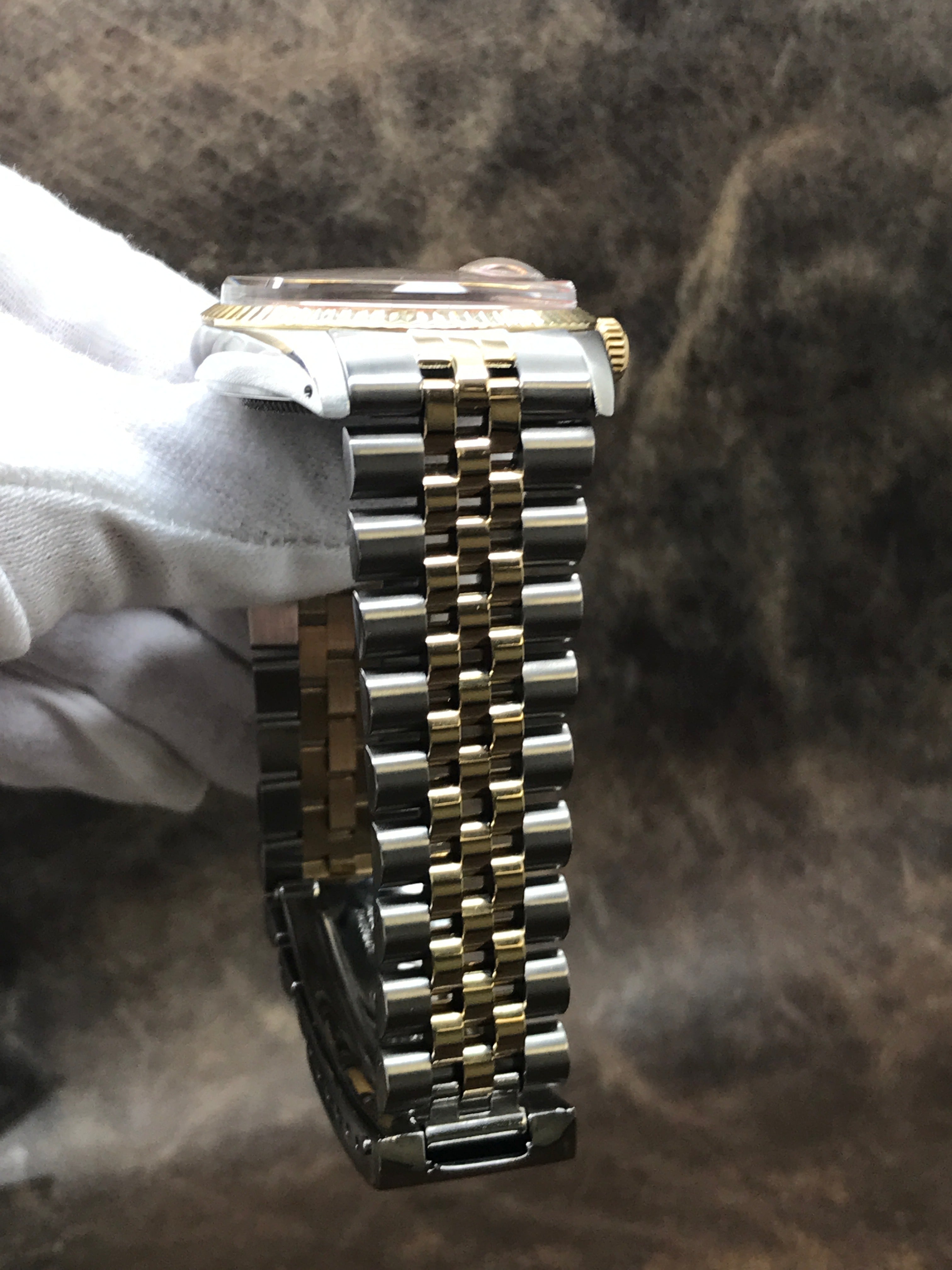 This pre-owned Rolex Datejust 36mm 16013 is in excellent condition and comes with: NO box or papers. The watch comes with a custom added diamond dial. Max wrist size: 7.25 in.