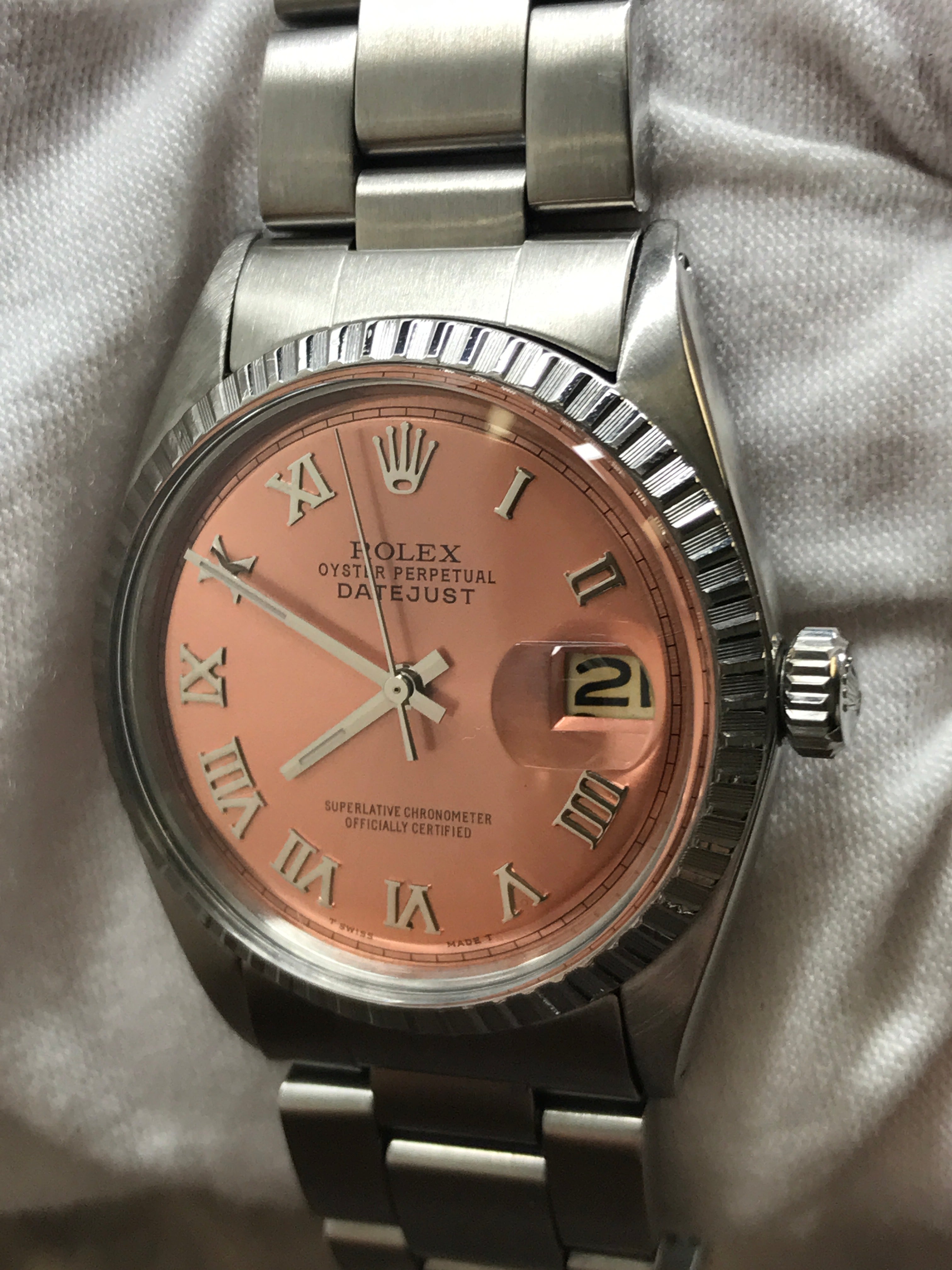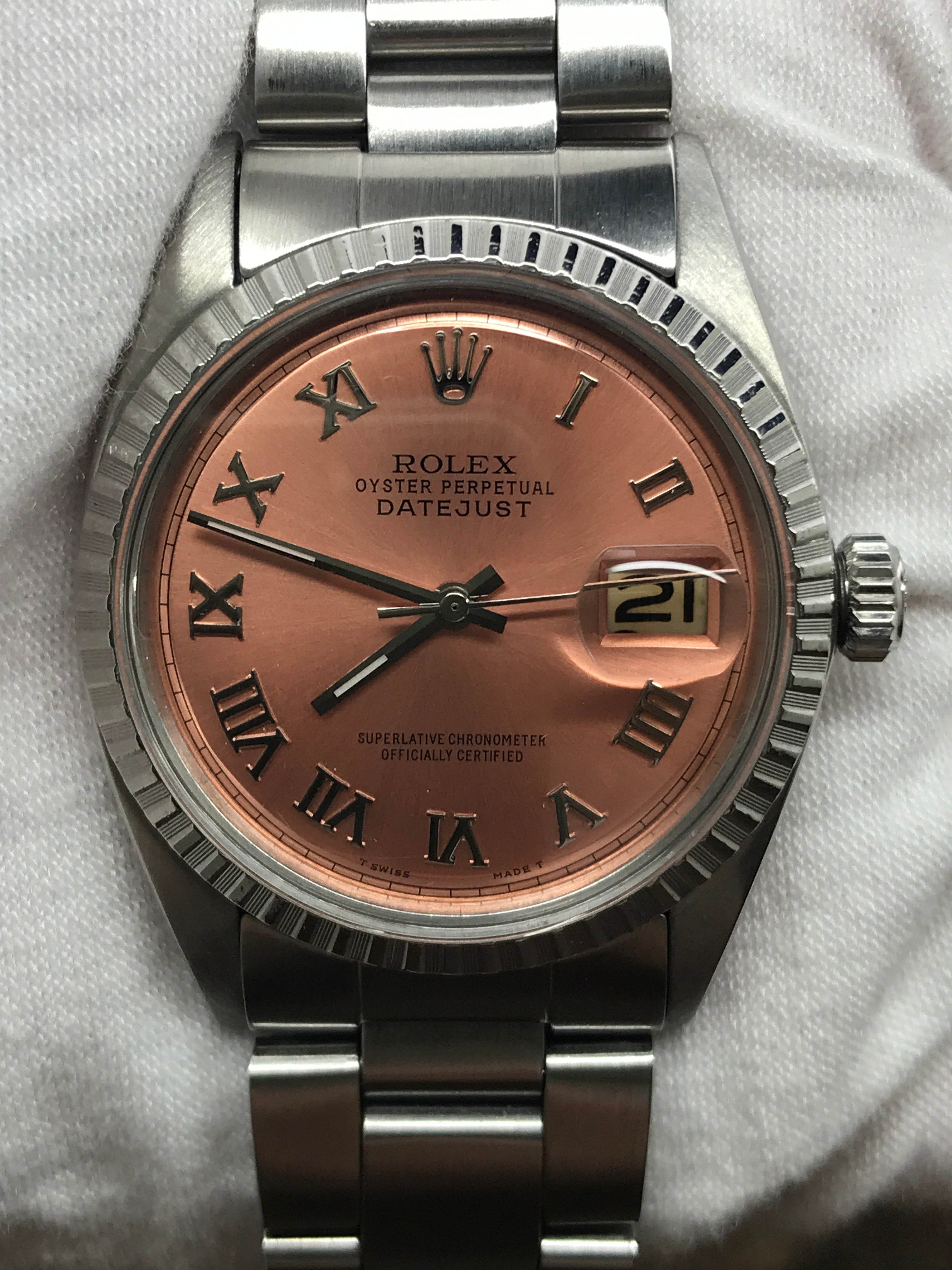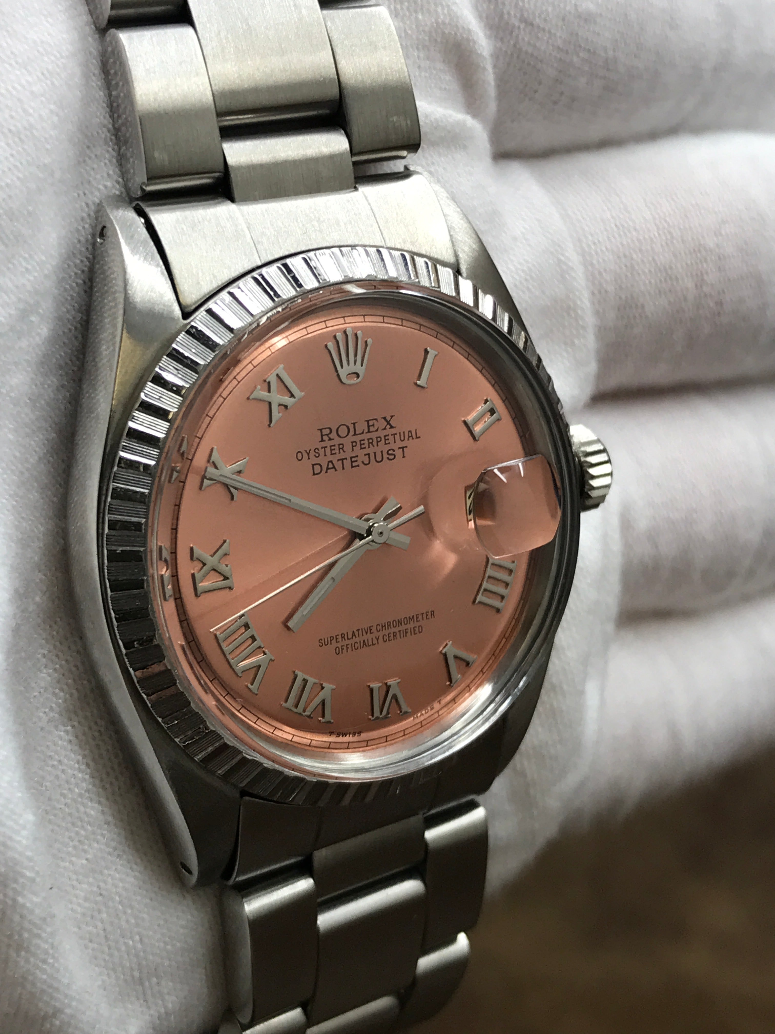 Rolex Datejust 36mm 1603 Custom Salmon Roman Dial Automatic Watch