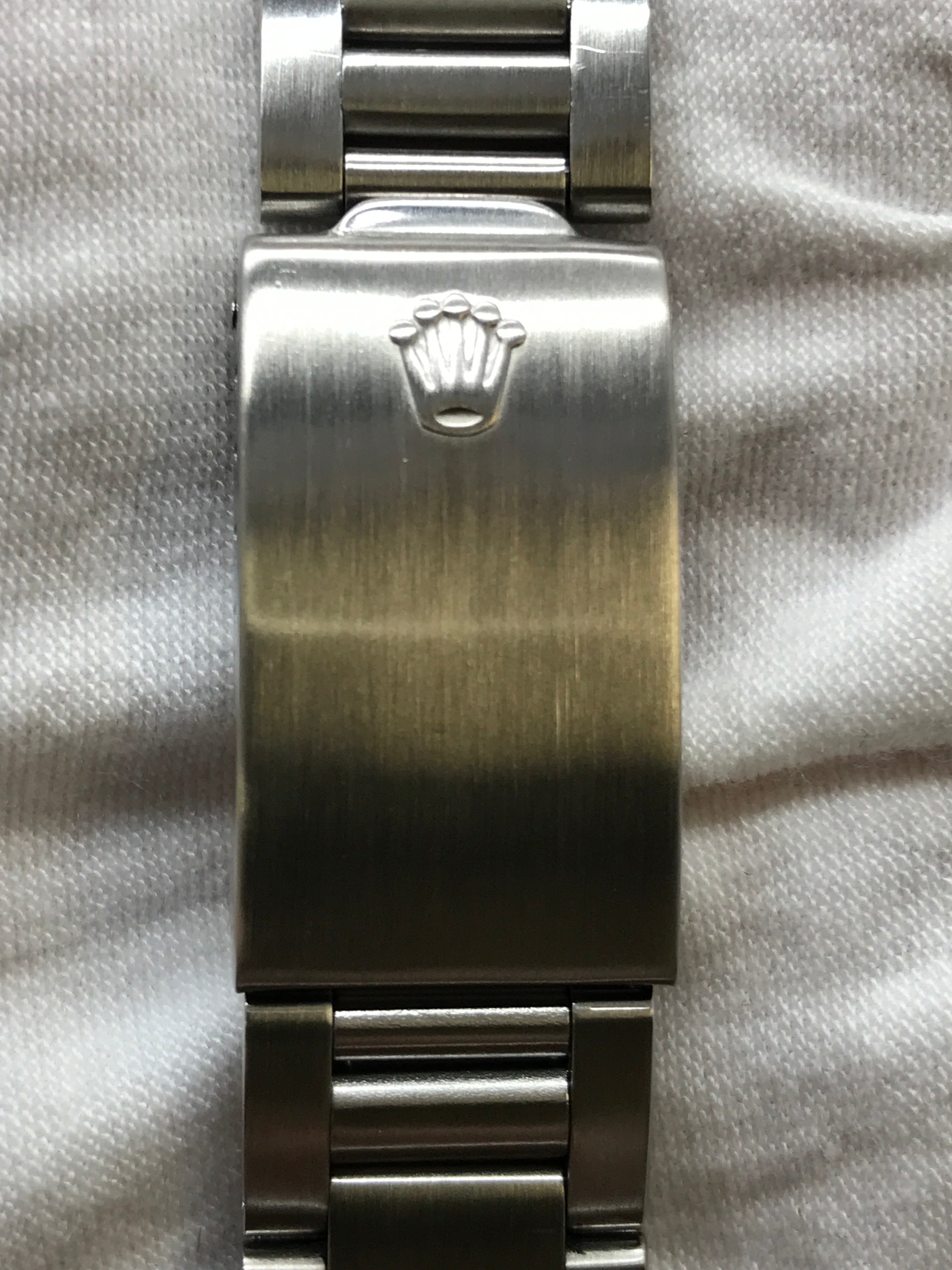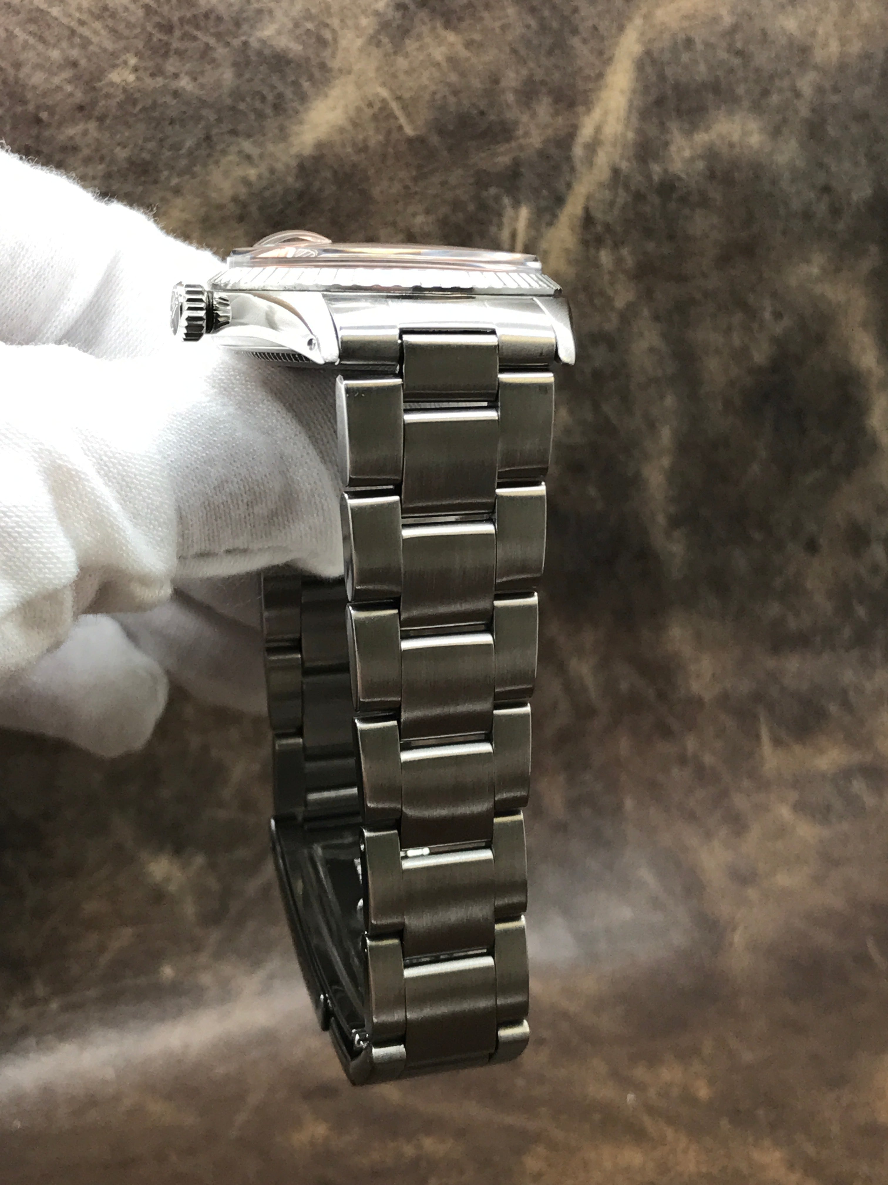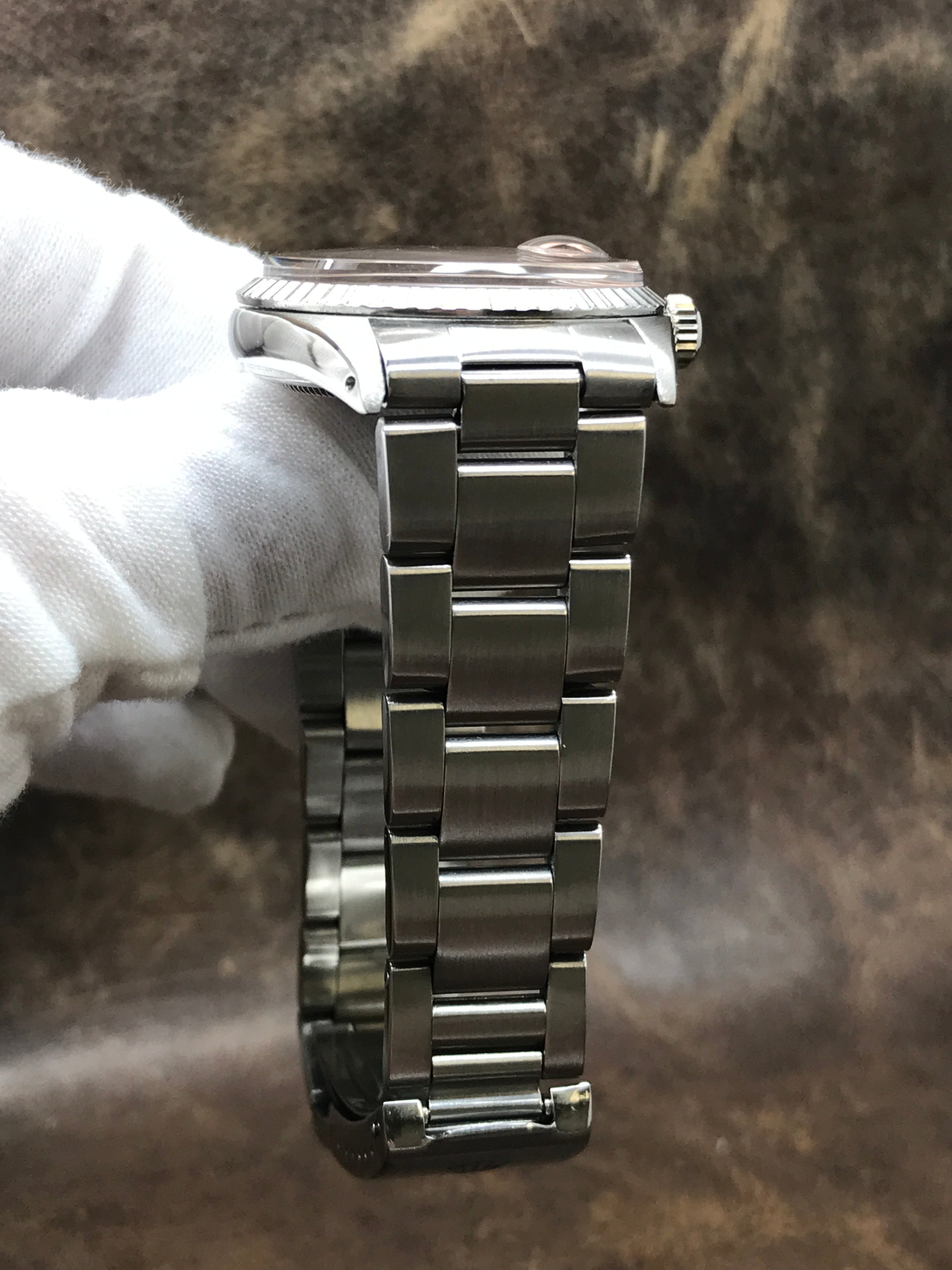 This pre-owned Rolex Datejust 36mm 1603 is in very good condition and comes with: NO box or papers. The dial has a small black mark near 5 o'clock. Max wrist size: 7.5 in.
