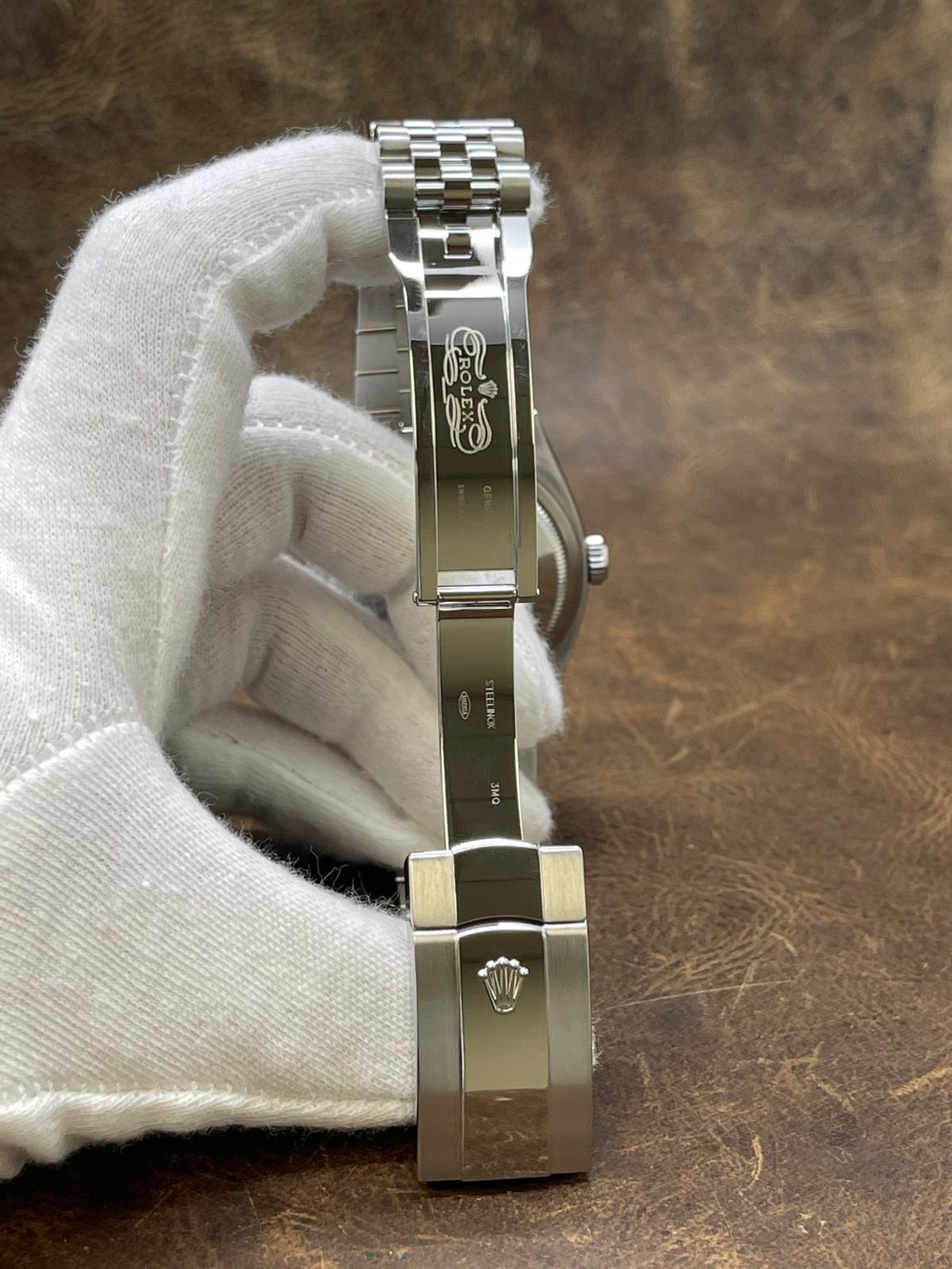 This pre-owned Rolex Datejust 36mm 126234 is in mint condition and comes with: original Rolex double box, tags, booklets and matching warranty card dated Jan 2020. Max wrist size: 7.5 in.