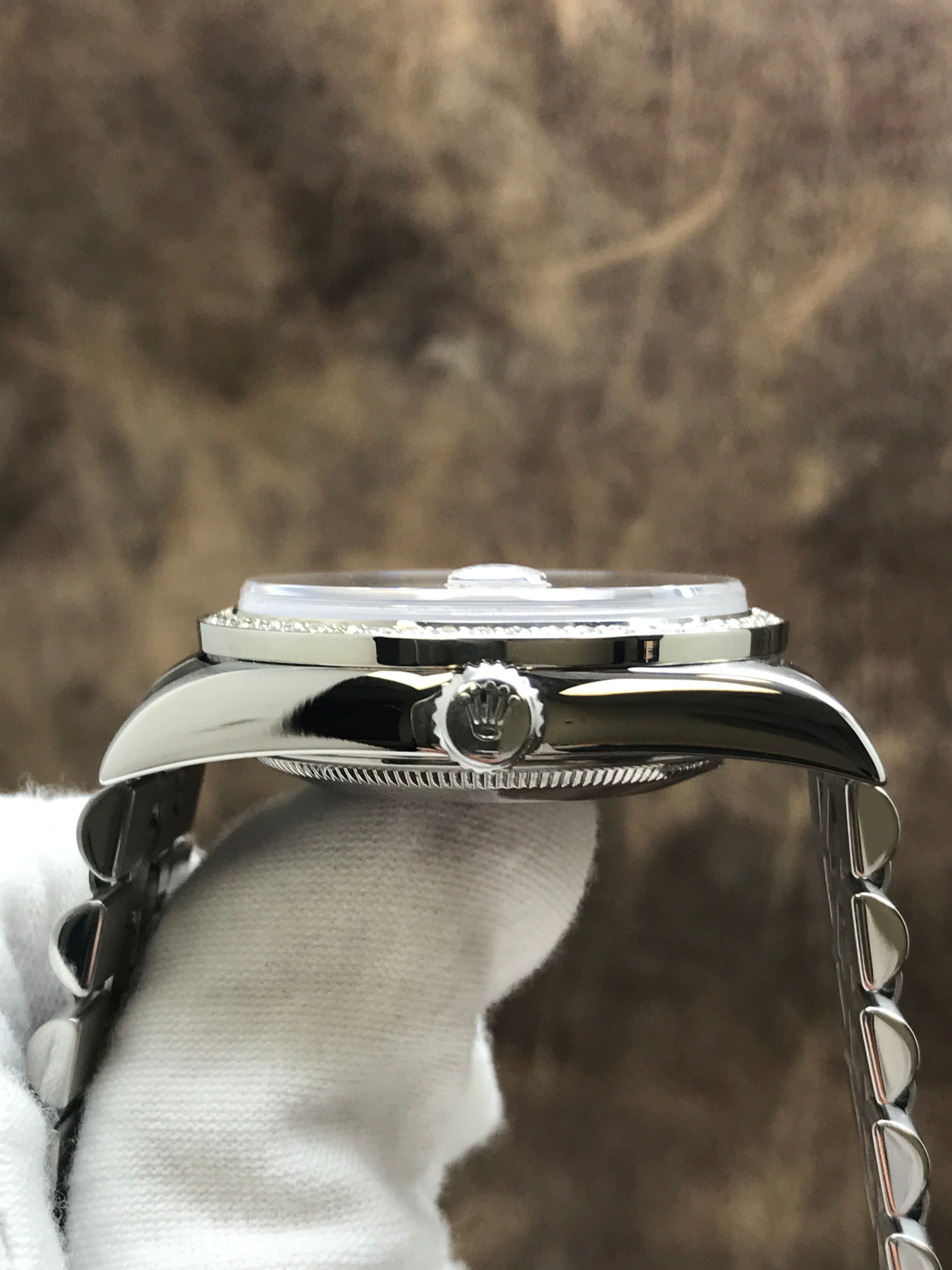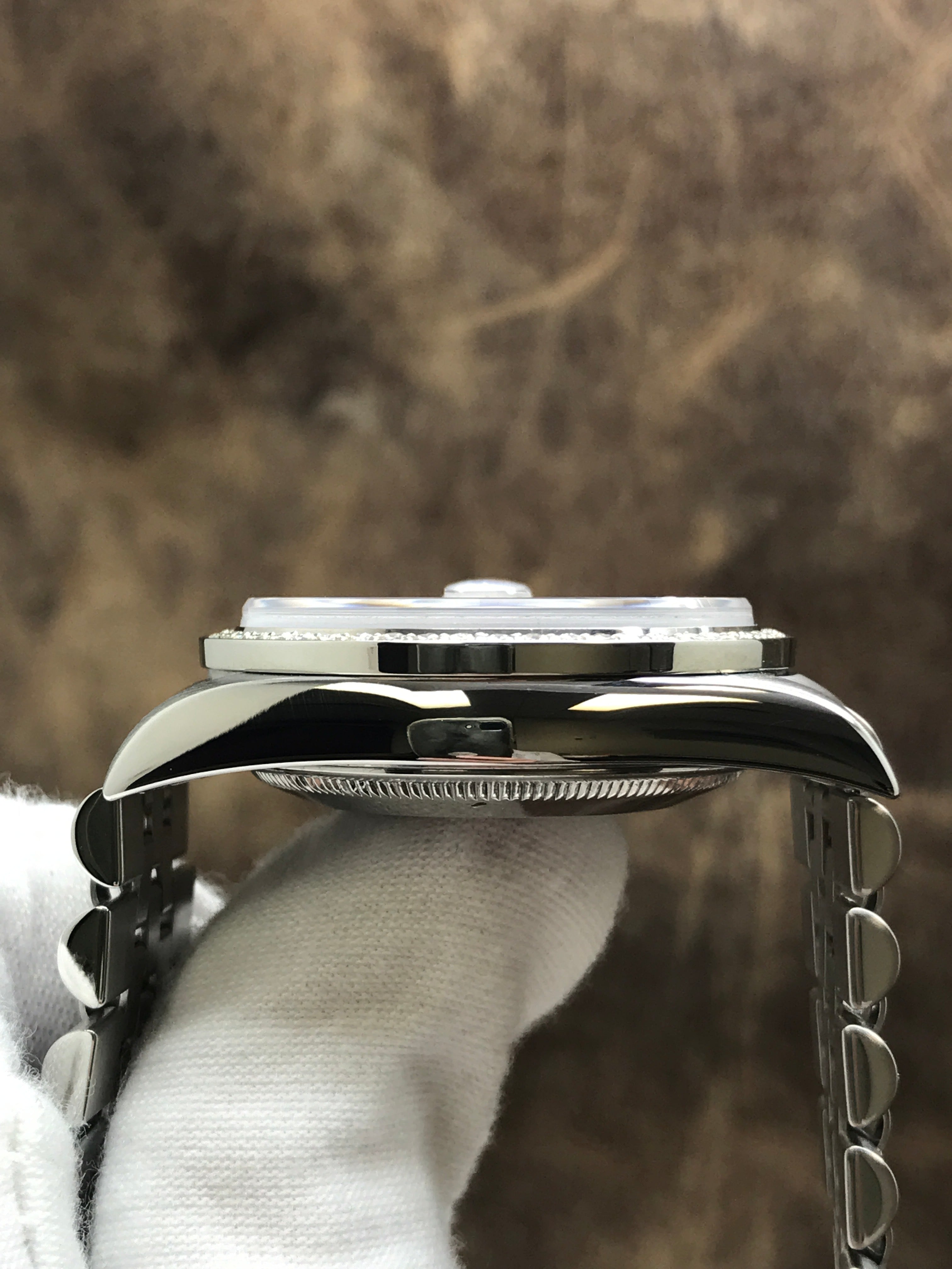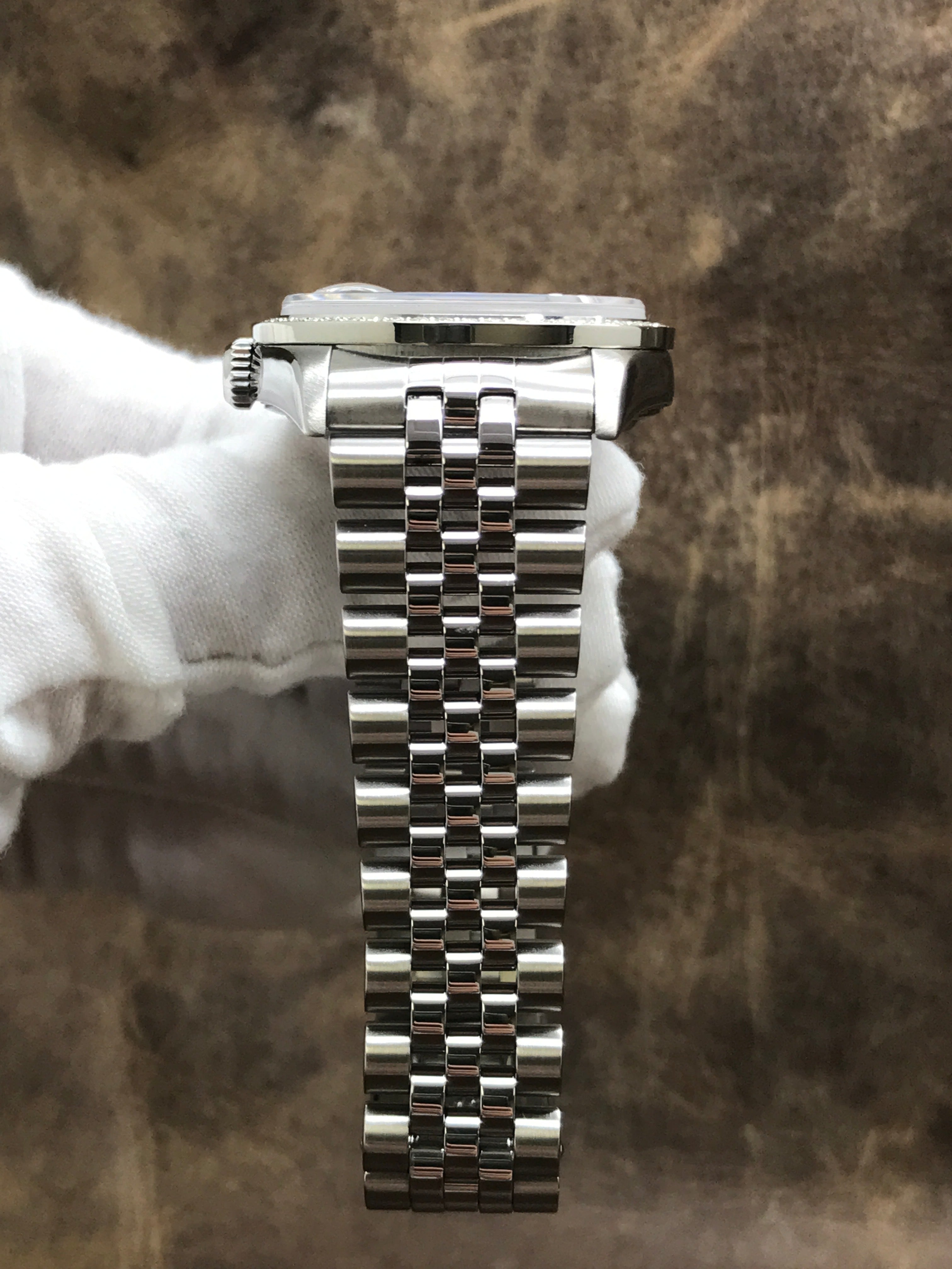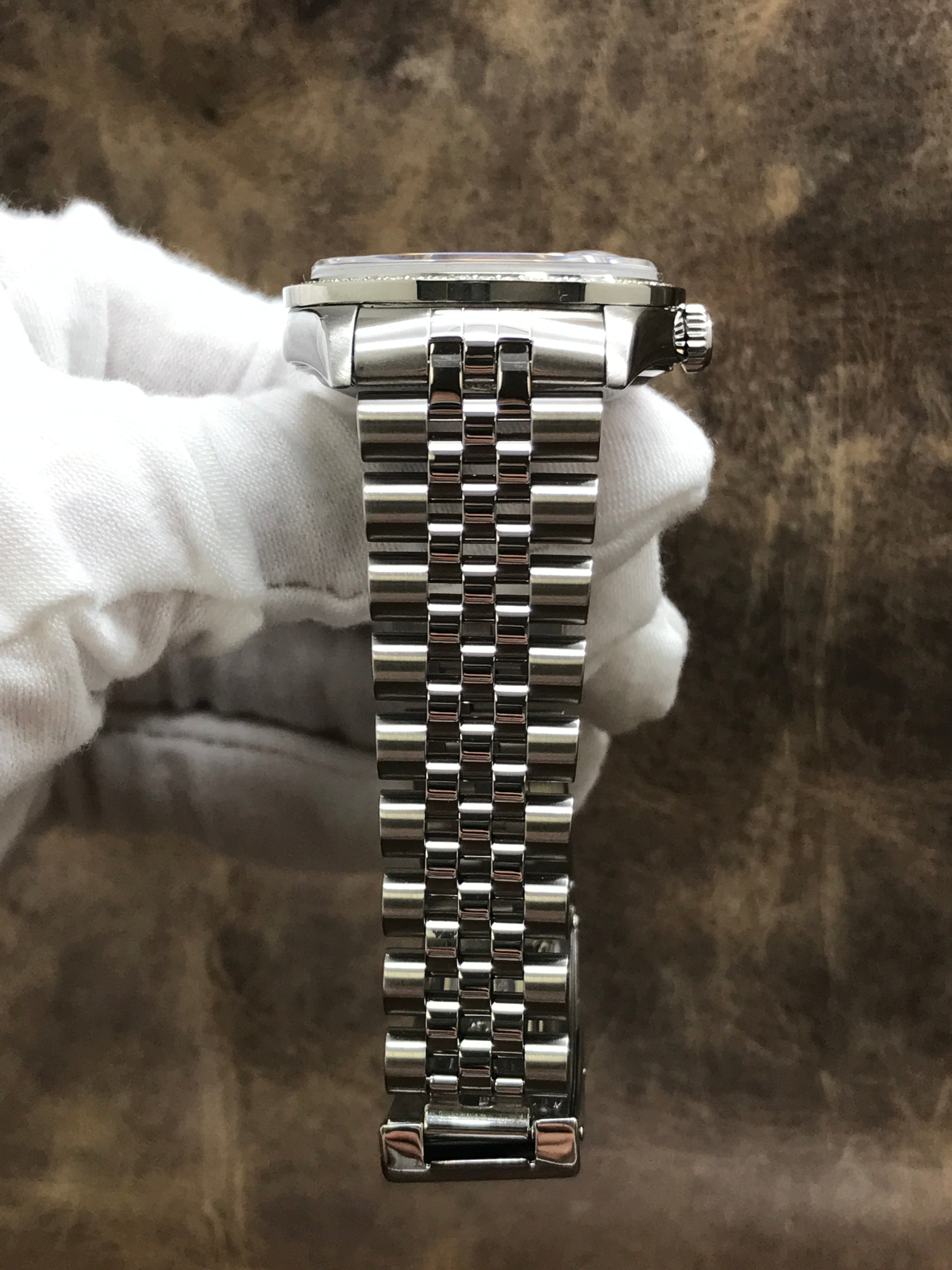 - Bezel Material Stainless steel with custom added diamonds