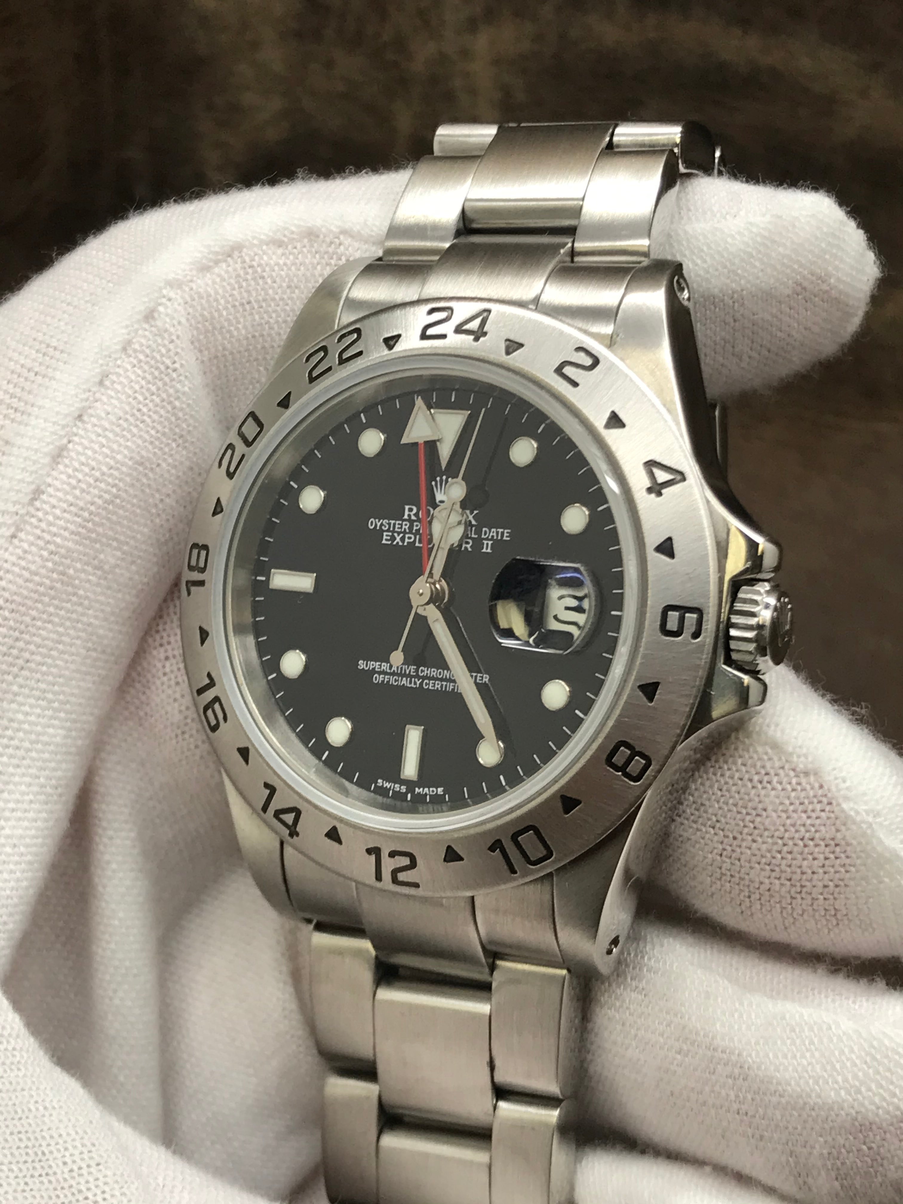 This pre-owned Rolex Explorer II 16570 is in excellent condition and comes with: original Rolex double box, tag, booklets, cloth & matching service & warranty papers. Max wrist size: 7.75 in.
