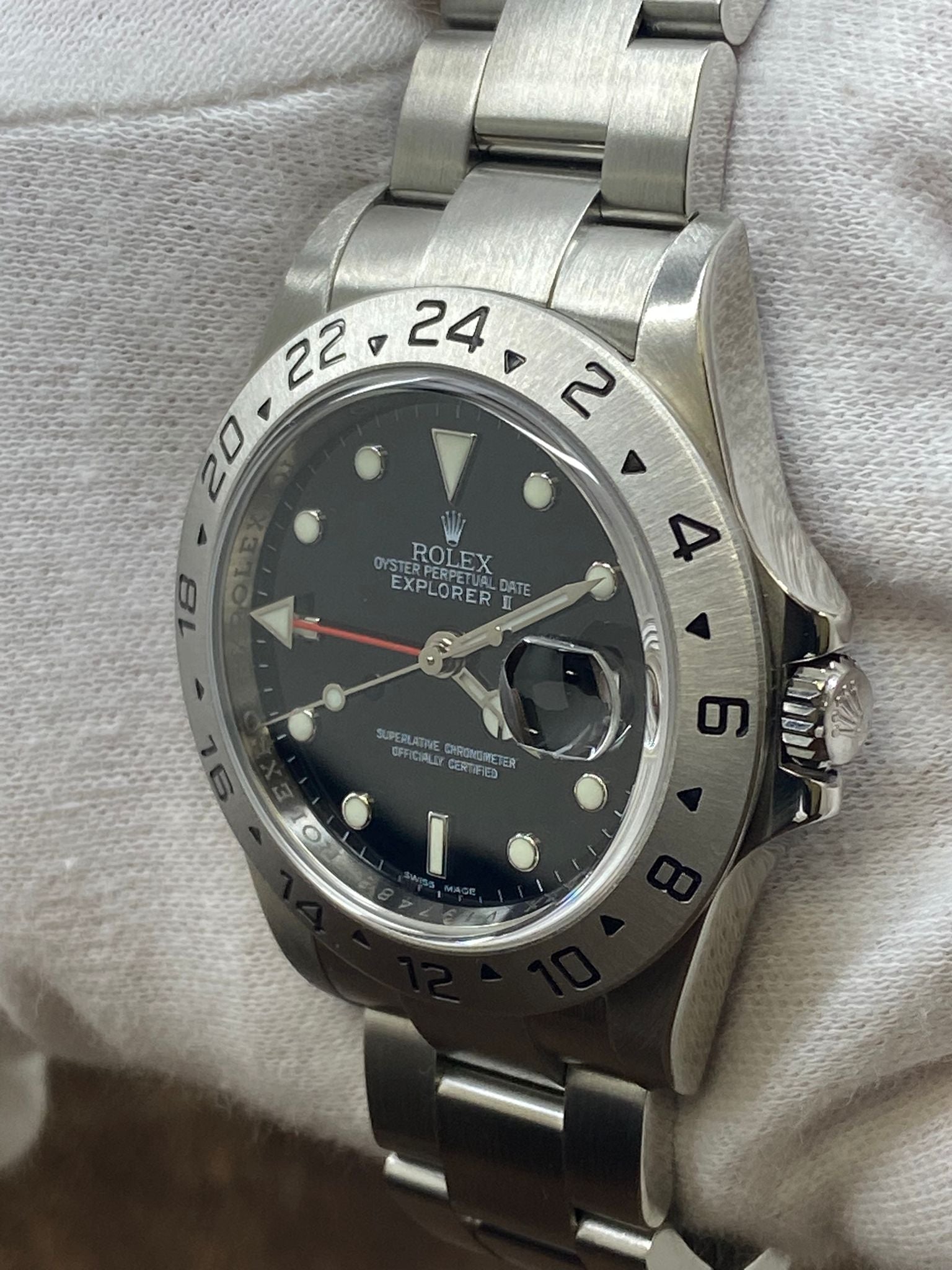 This pre-owned Rolex Explorer II Caliber 3186 16570 is in excellent condition and comes with: NO box or papers. Max wrist size: 6.75 in.