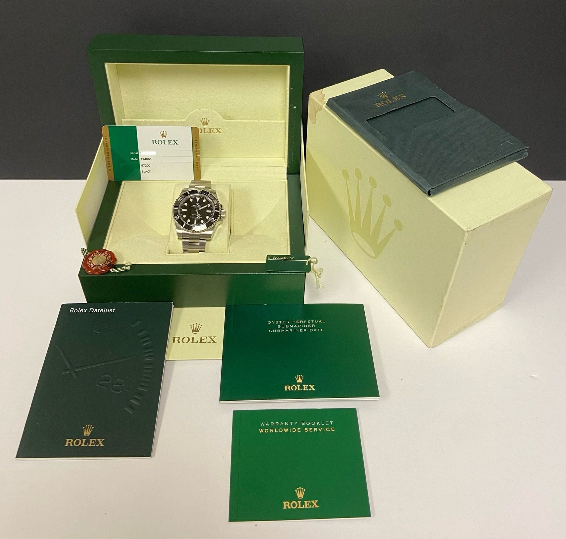 - original Rolex full set with double box, booklets, tags and matching warranty card dated 2016