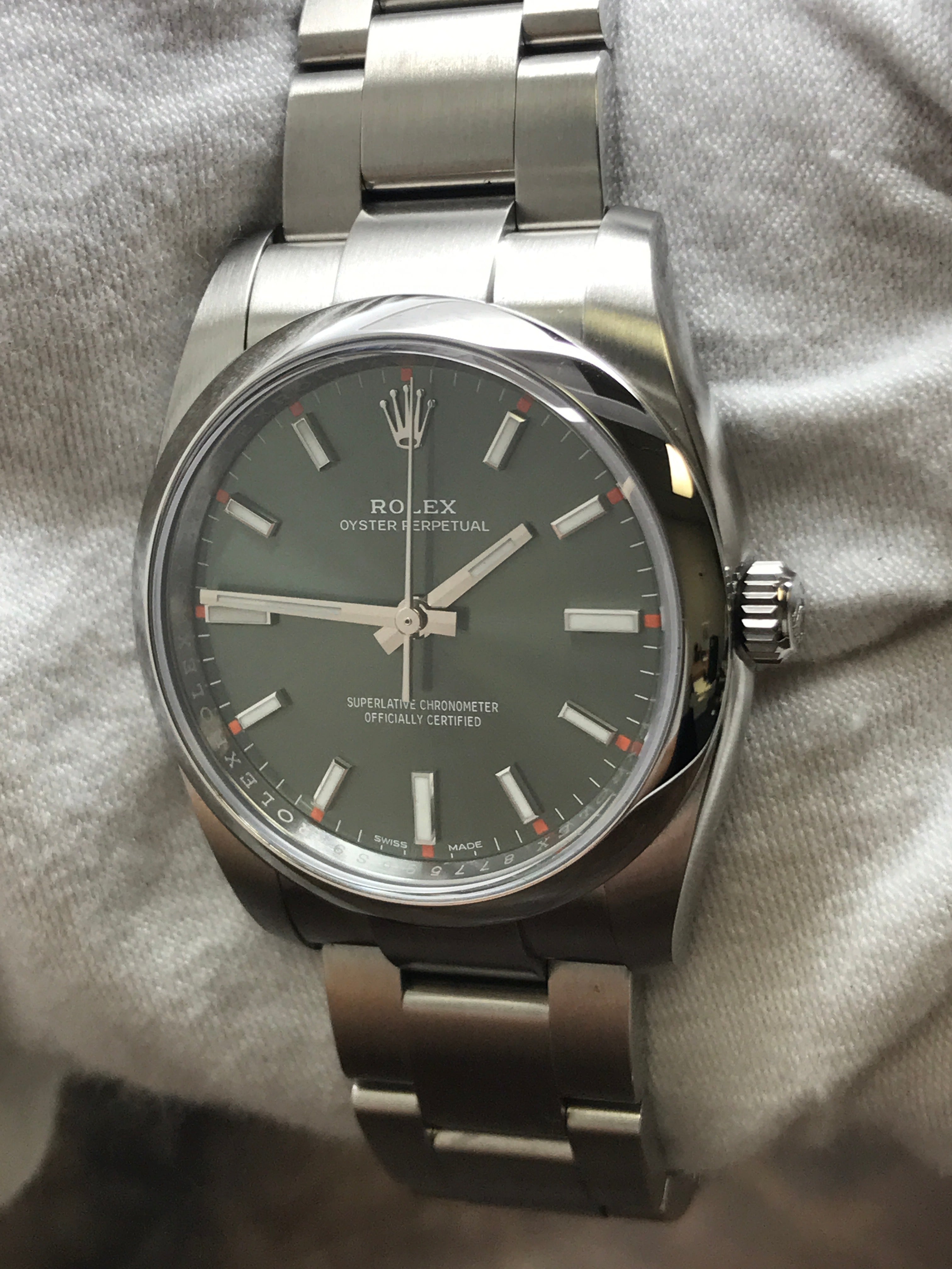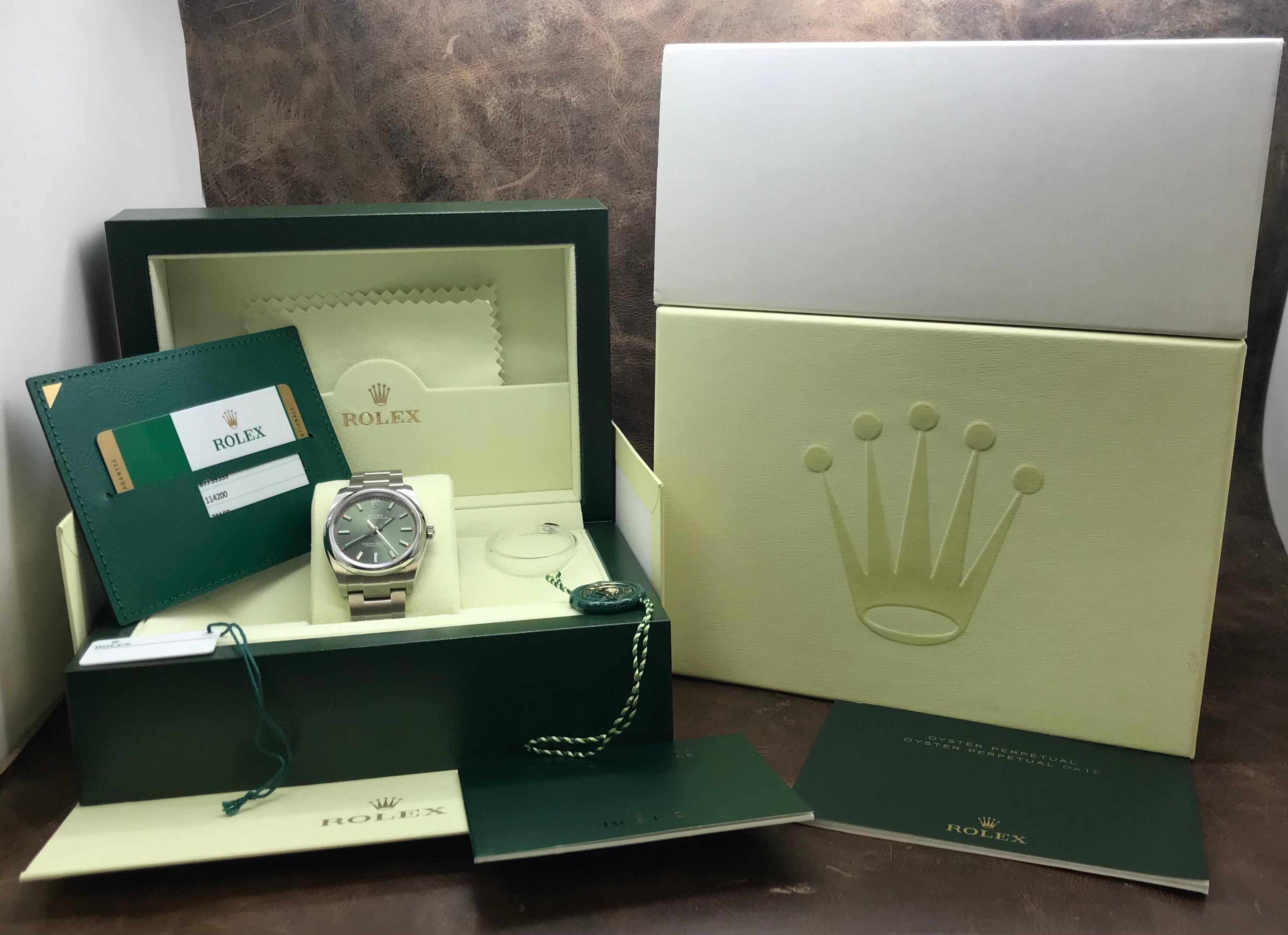 Rolex Oyster Perpetual 34mm 114200 Olive Green Dial Automatic Watch