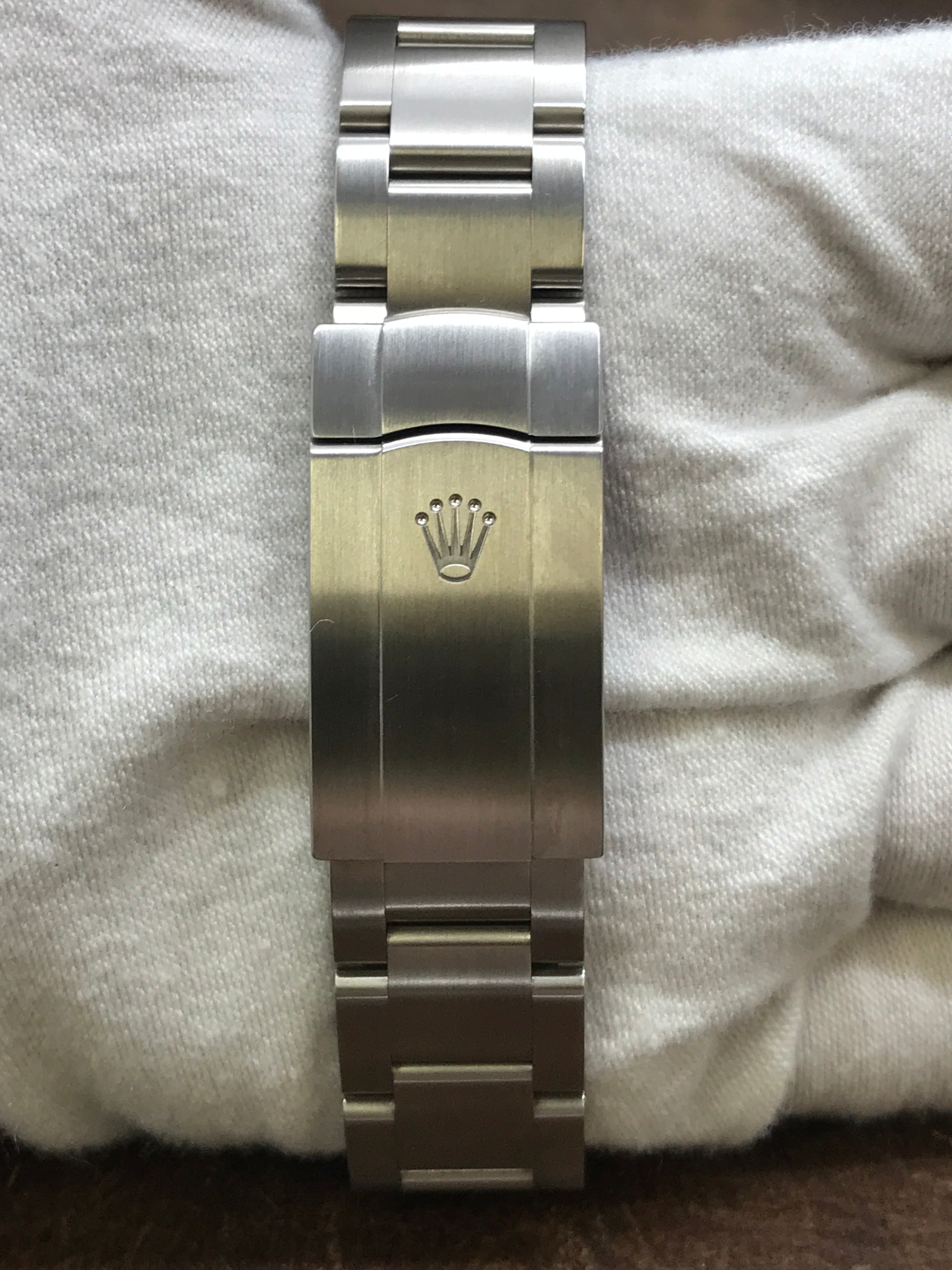 This pre-owned Rolex Oyster Perpetual 34mm 114200 is in mint condition and comes with: original Rolex double box, tags, booklets & matching warranty card dated 2019. Max wrist size: 7.5 in.