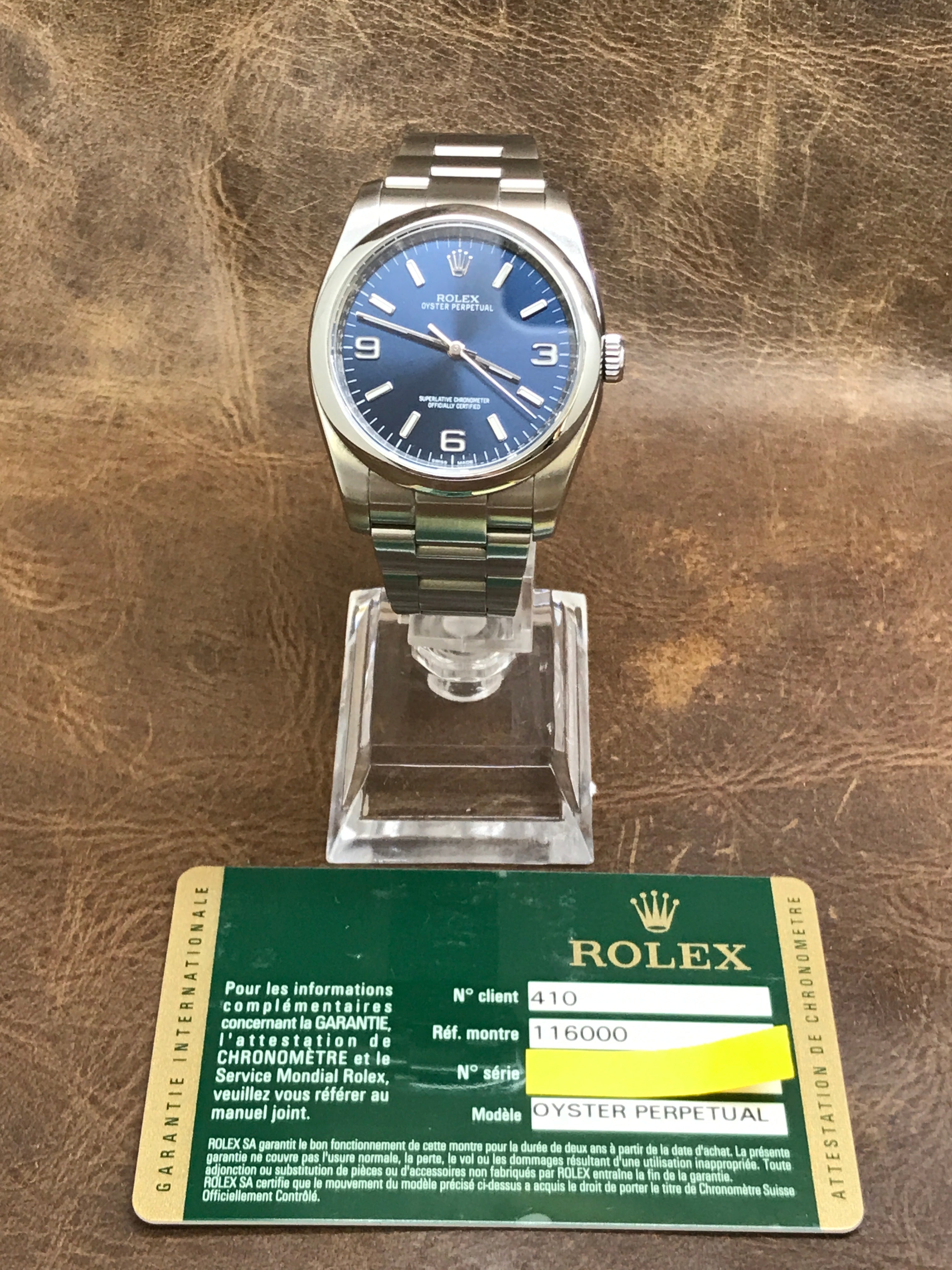 - original Rolex warranty card dated 2013