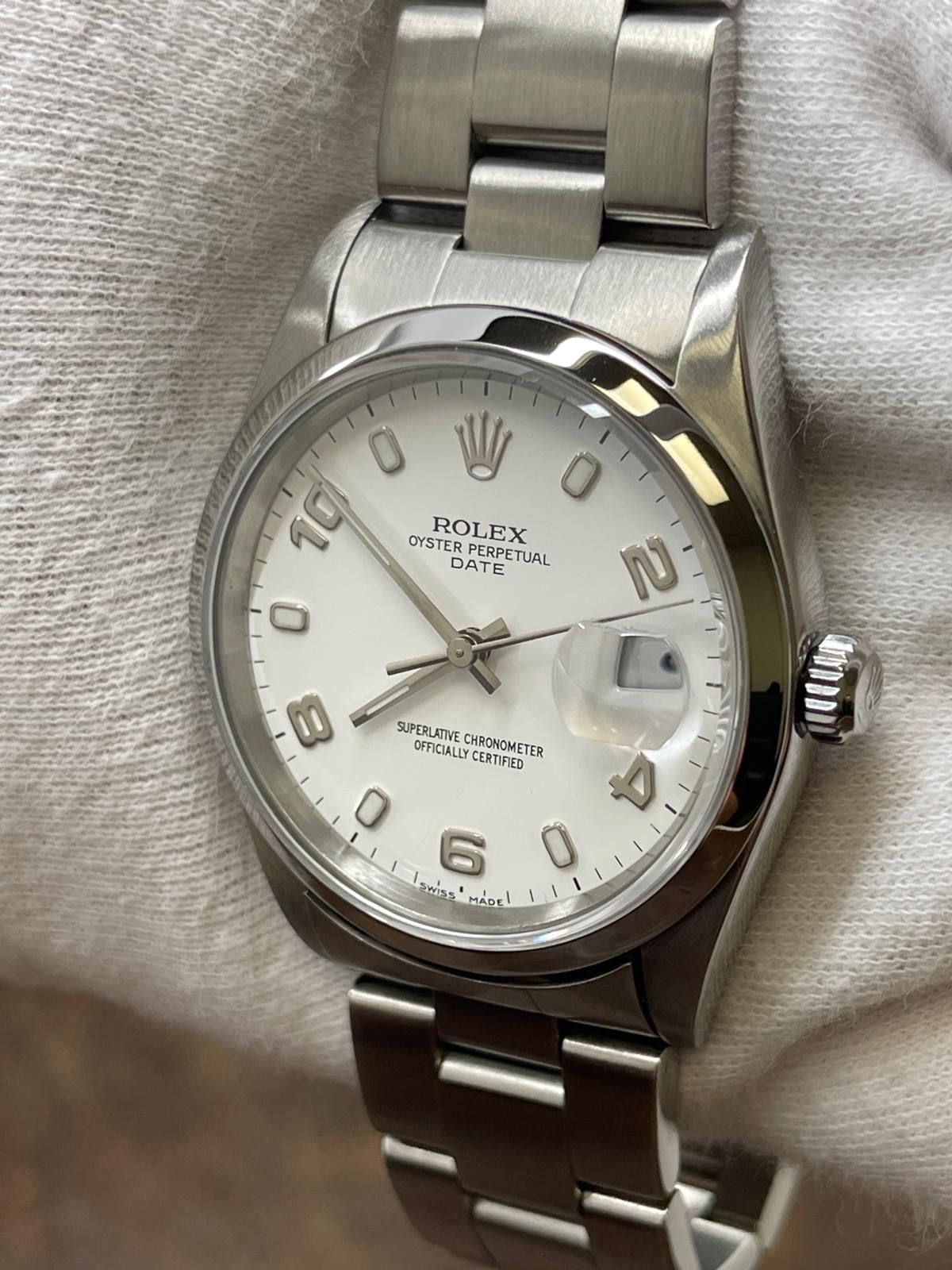 Rolex Oyster Perpetual Date 34mm 15200 White Dial Automatic Watch