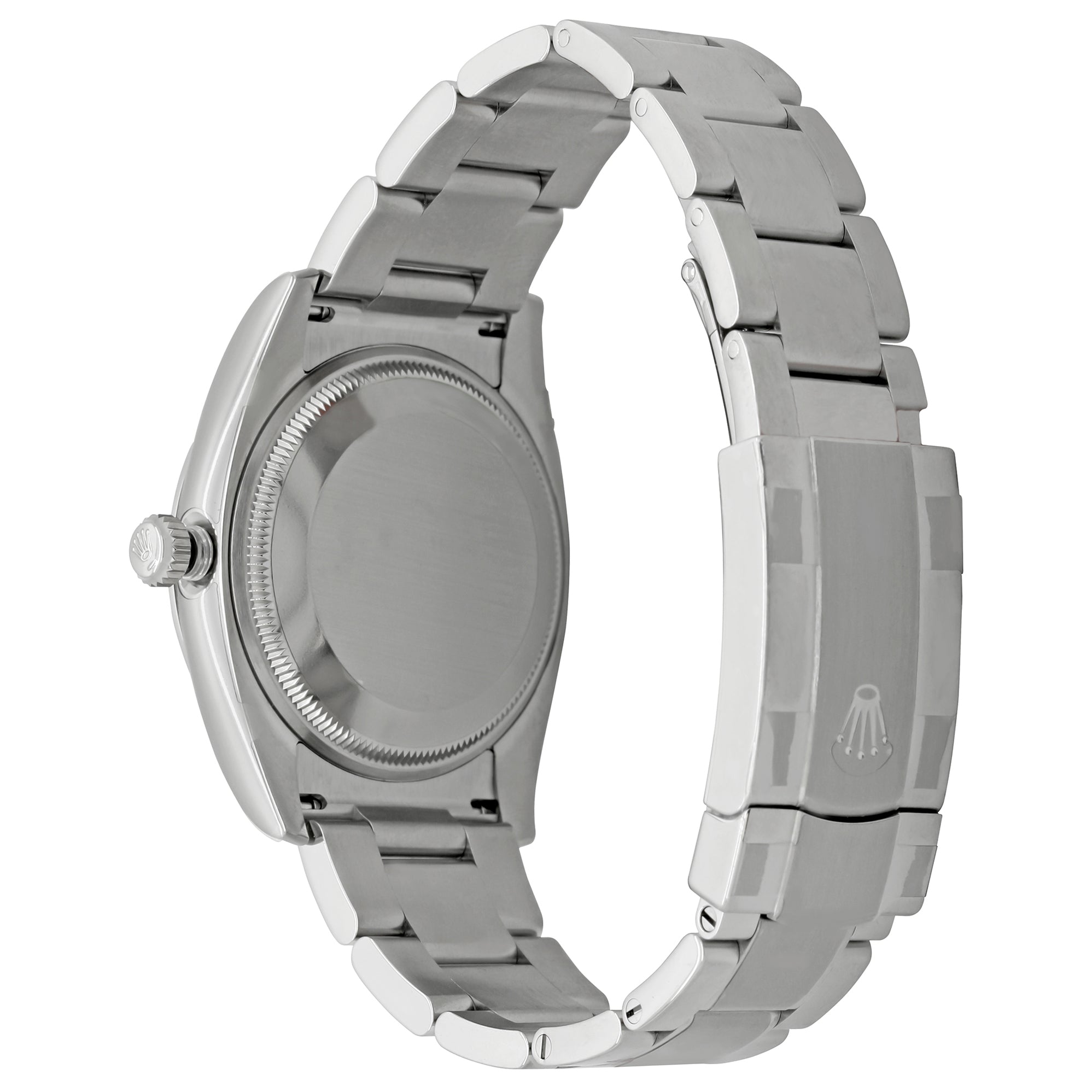 This pre-owned Rolex Oyster Perpetual 114200 is in unworn condition and comes with: Rolex Box & Papers. This watch is unworn with stickers. Max wrist size: 725 in.