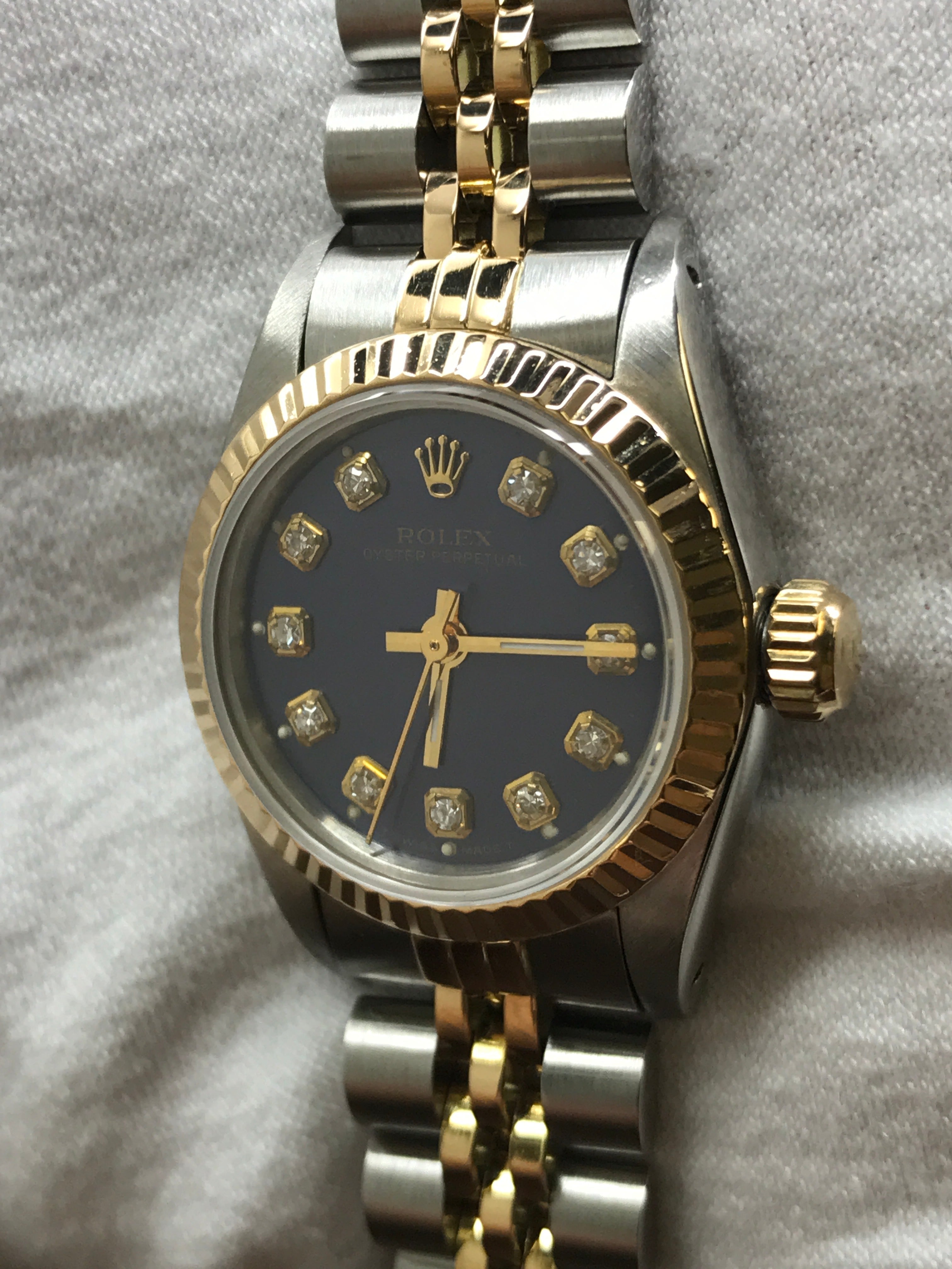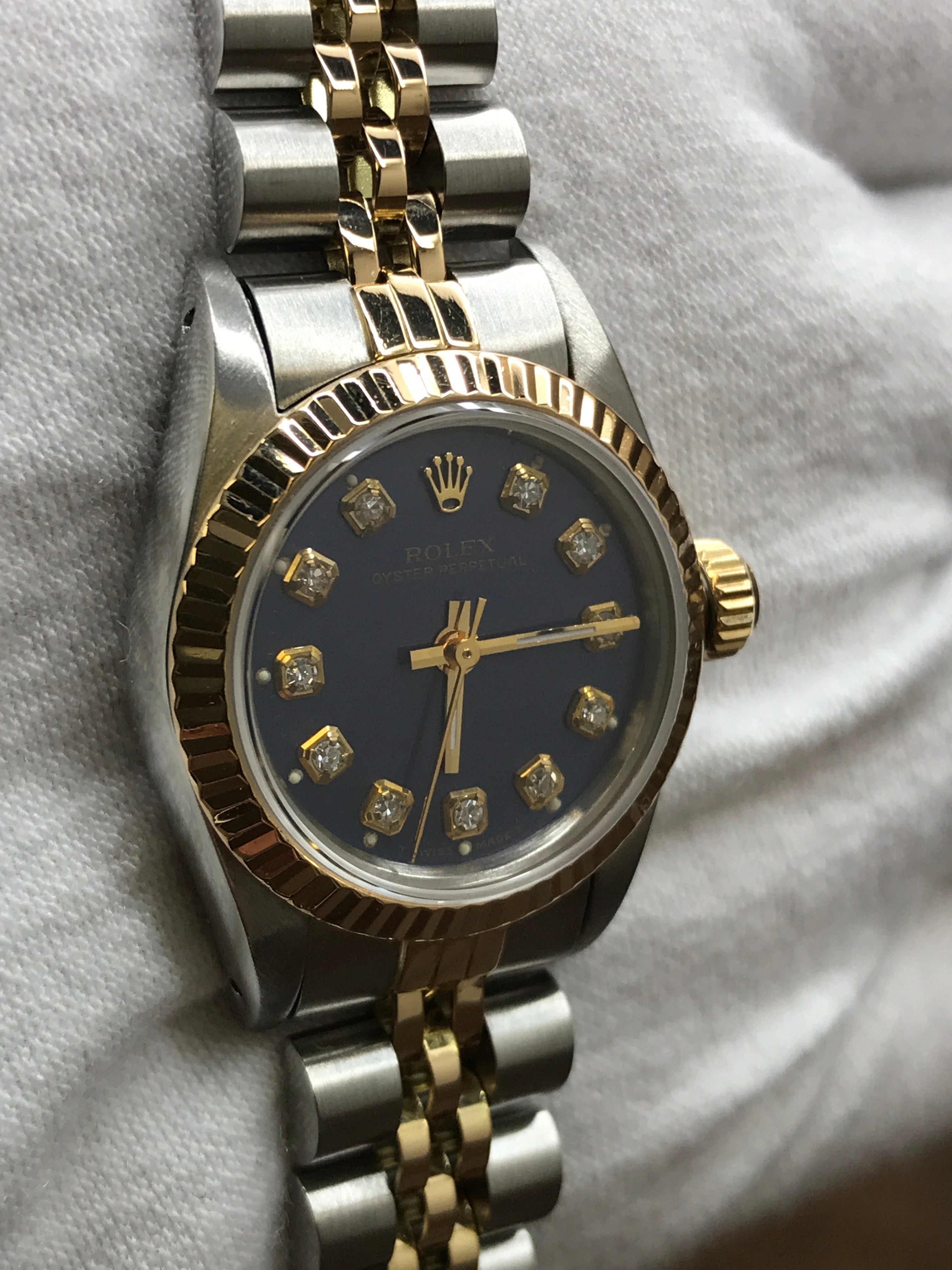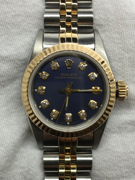 Rolex Oyster Perpetual 67193 Custom Blue Diamond Dial Automatic Women's Watch