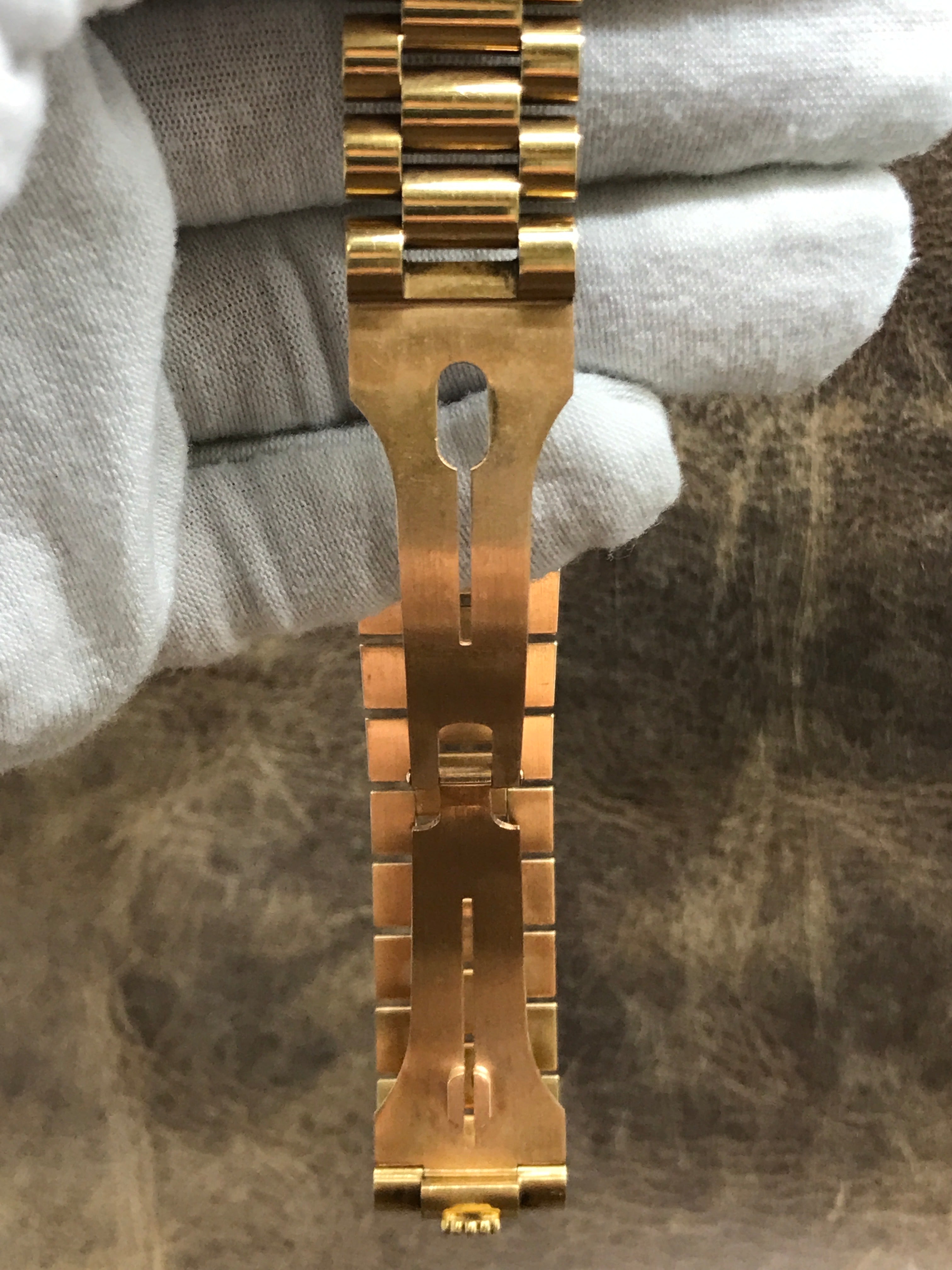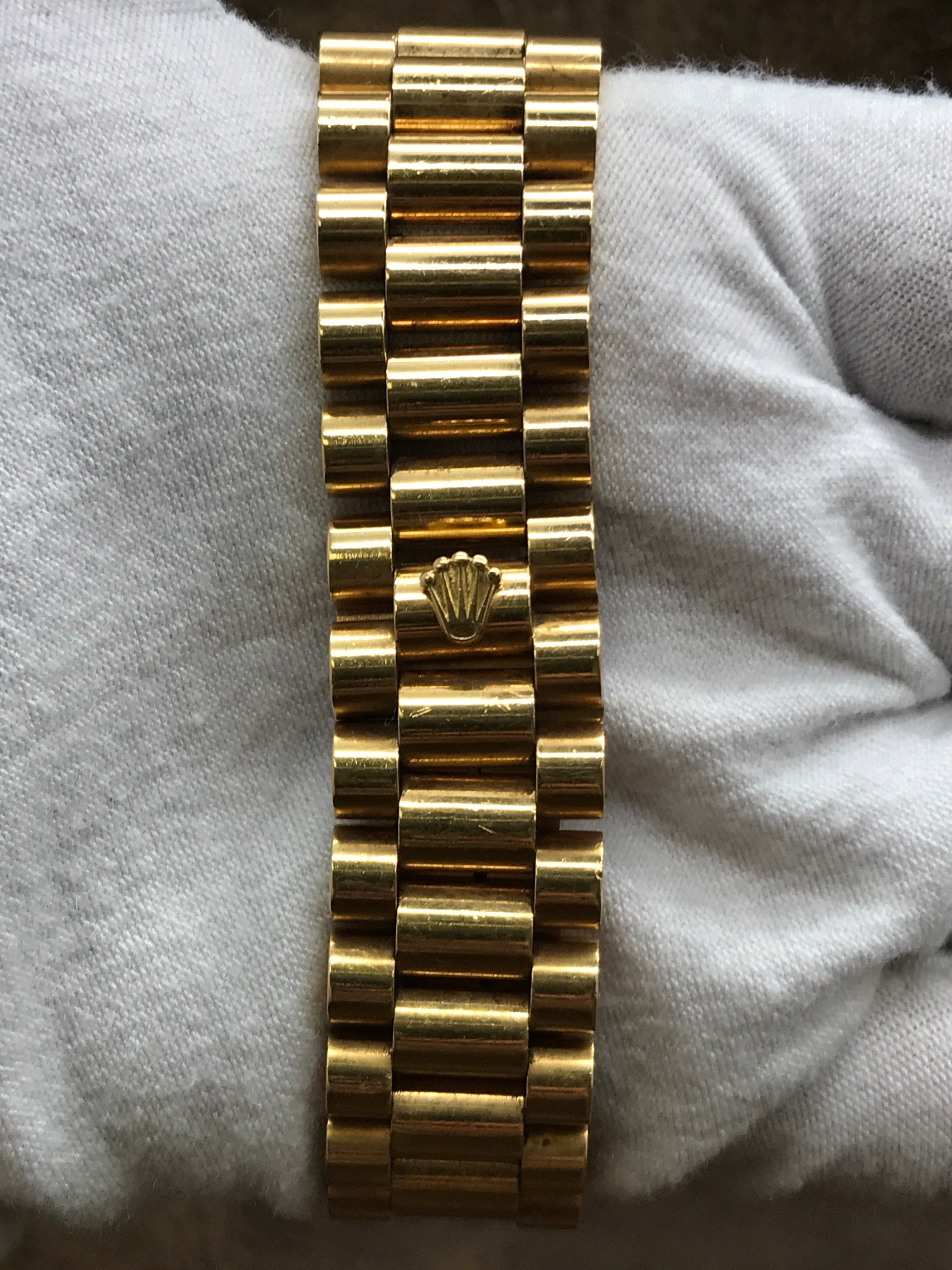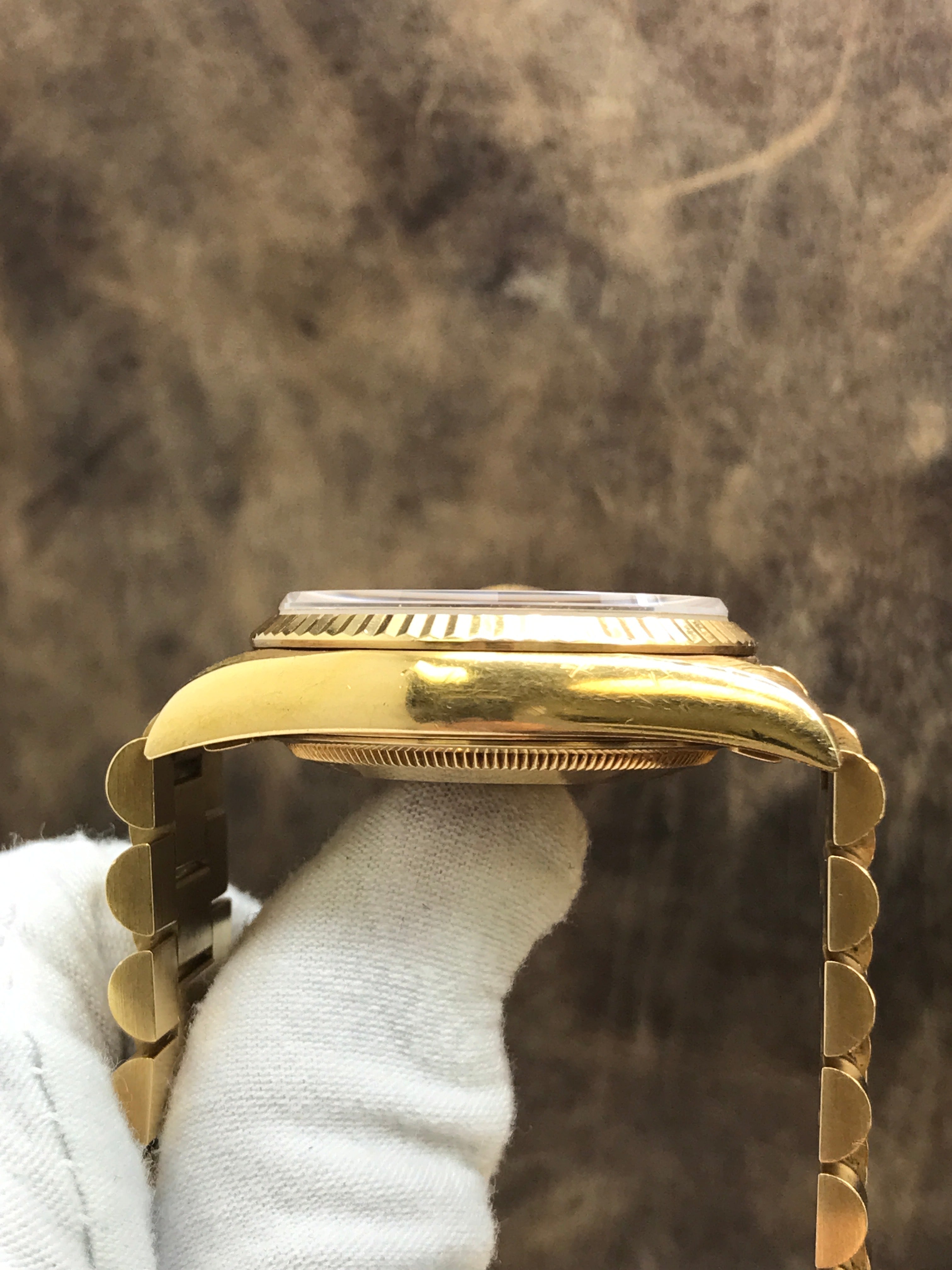 This pre-owned Rolex President Day Date 36mm 18238 is in mint condition and comes with: original Rolex double box, tags, booklets, leather notebook & matching warranty papers. Max wrist size: 7.25 in.