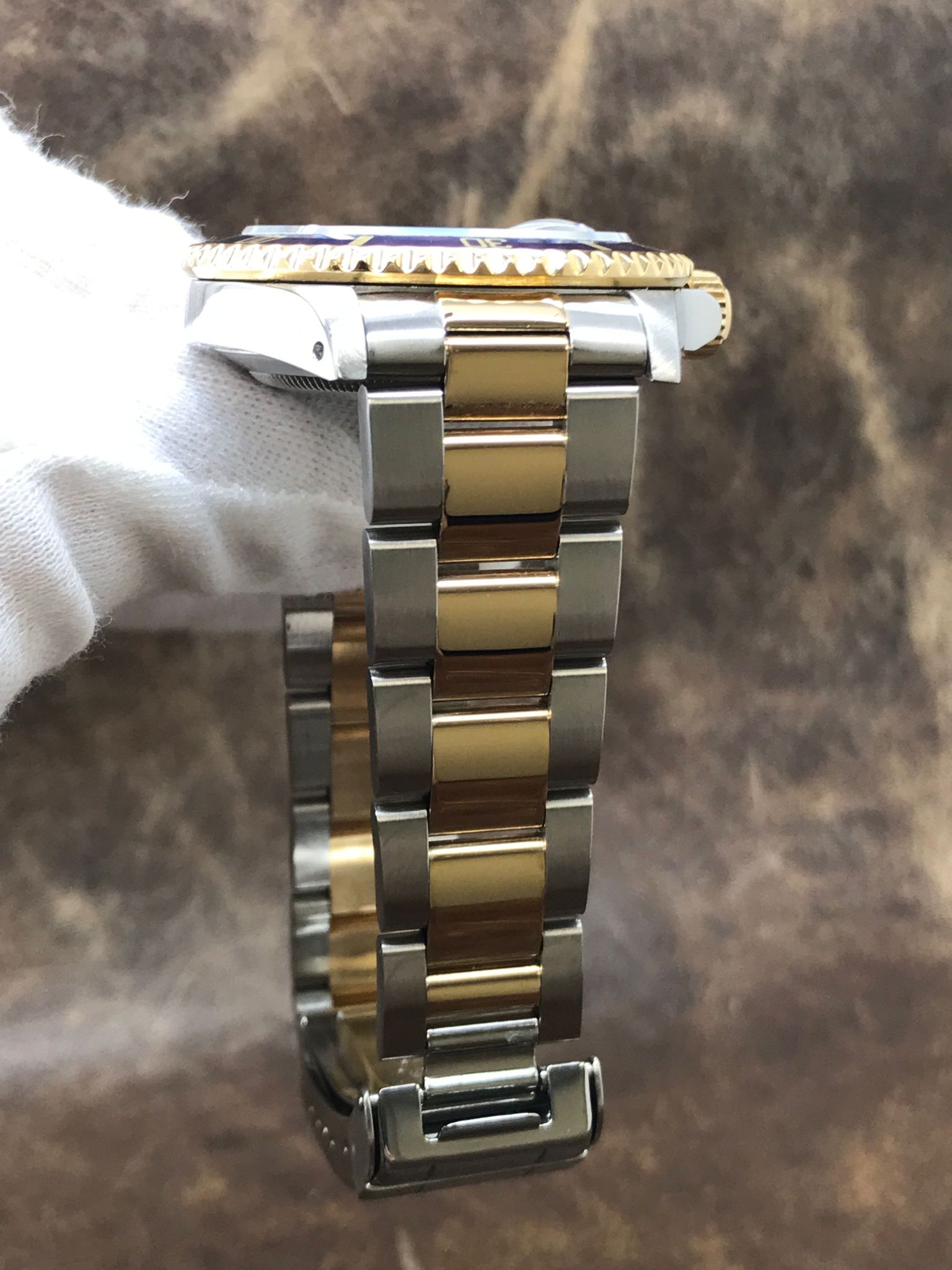 - Bezel Material 18k Yellow Gold with aluminium blue ring
