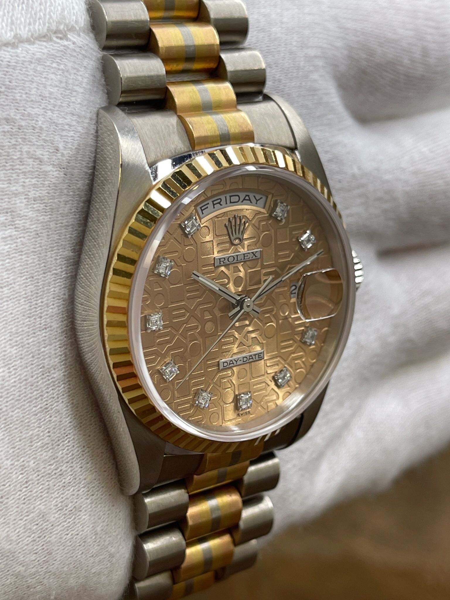 Rolex Tridor President Day Date 36mm 18239B Champ Diamond Dial Automatic Watch