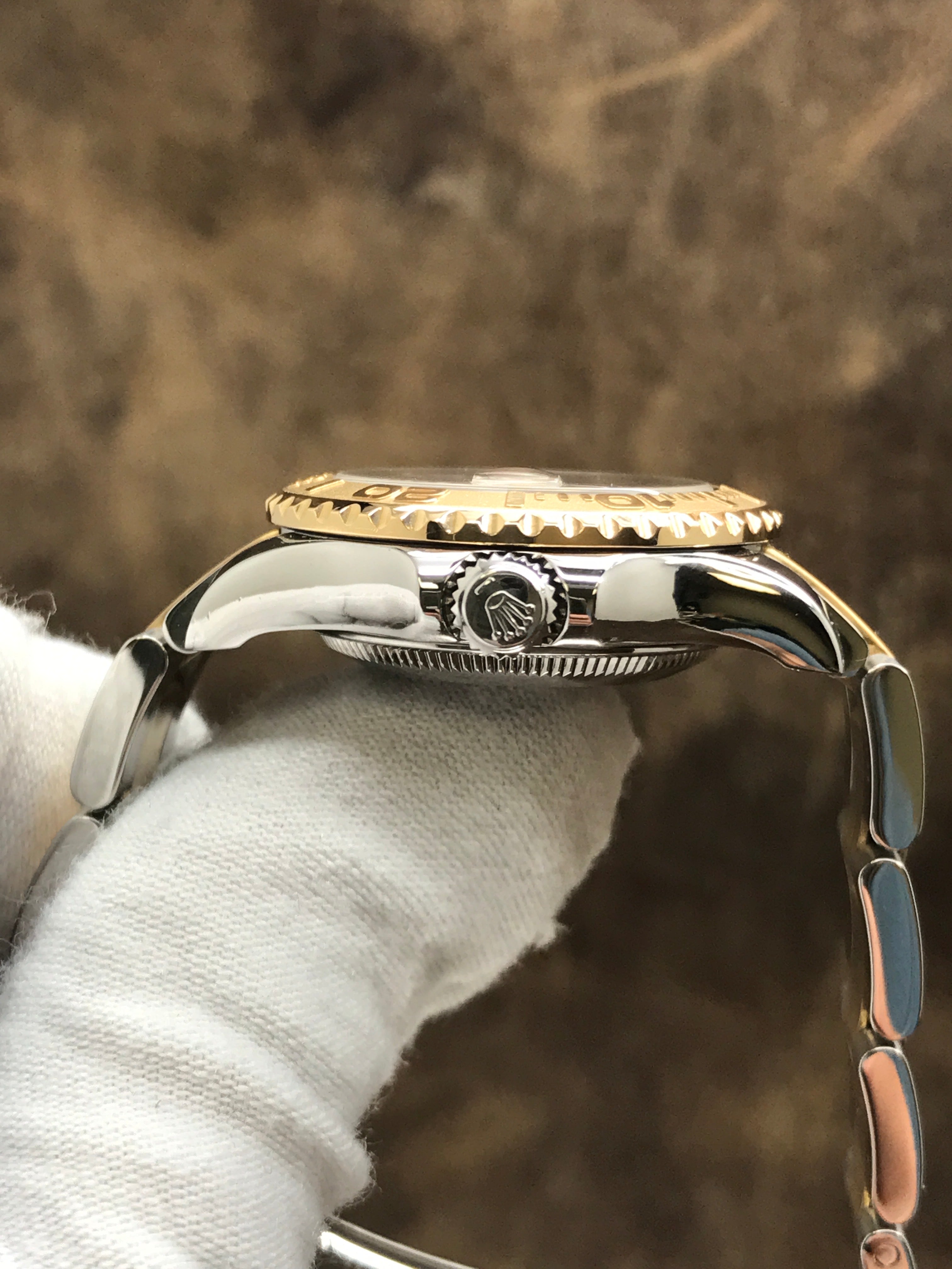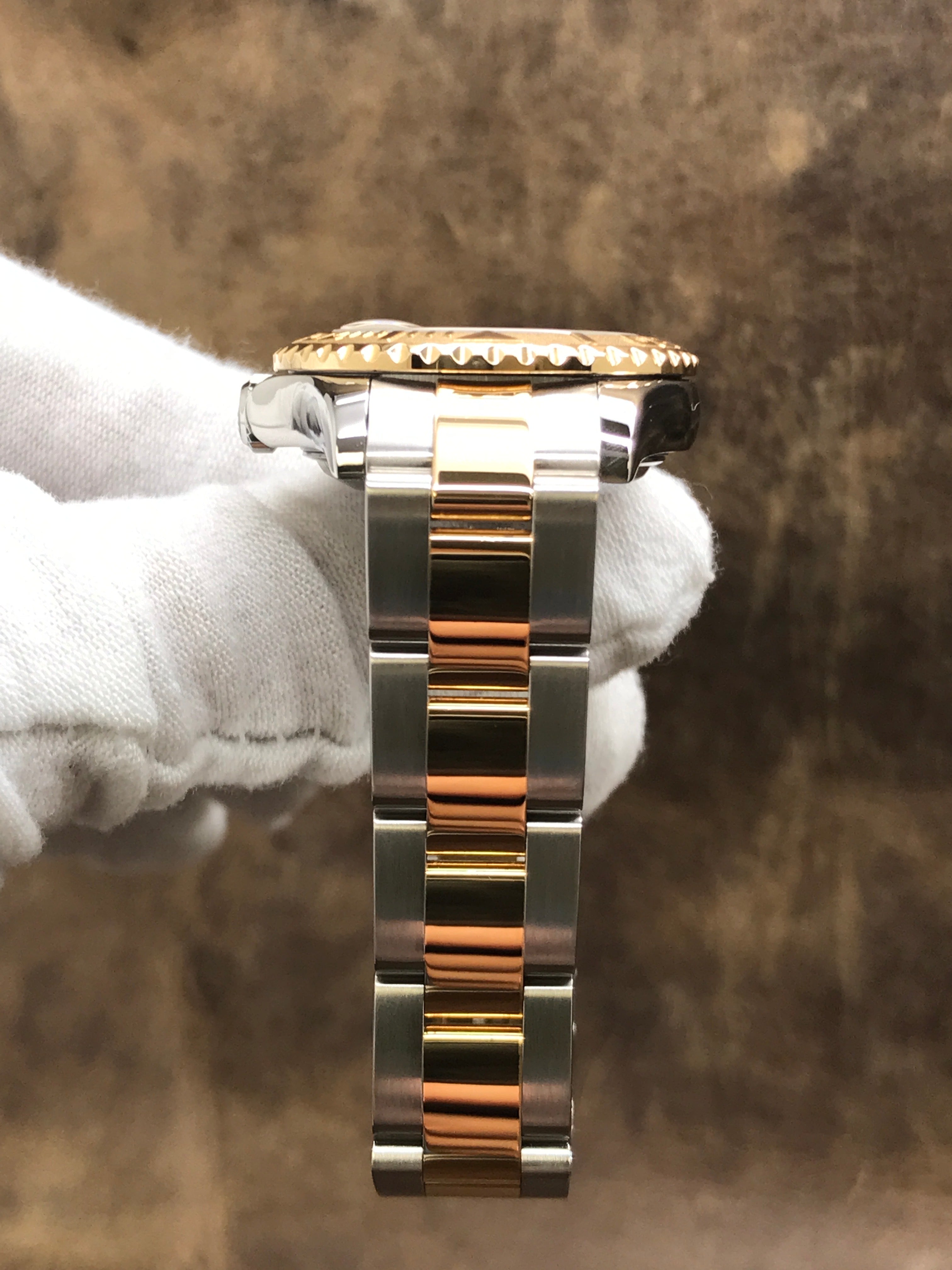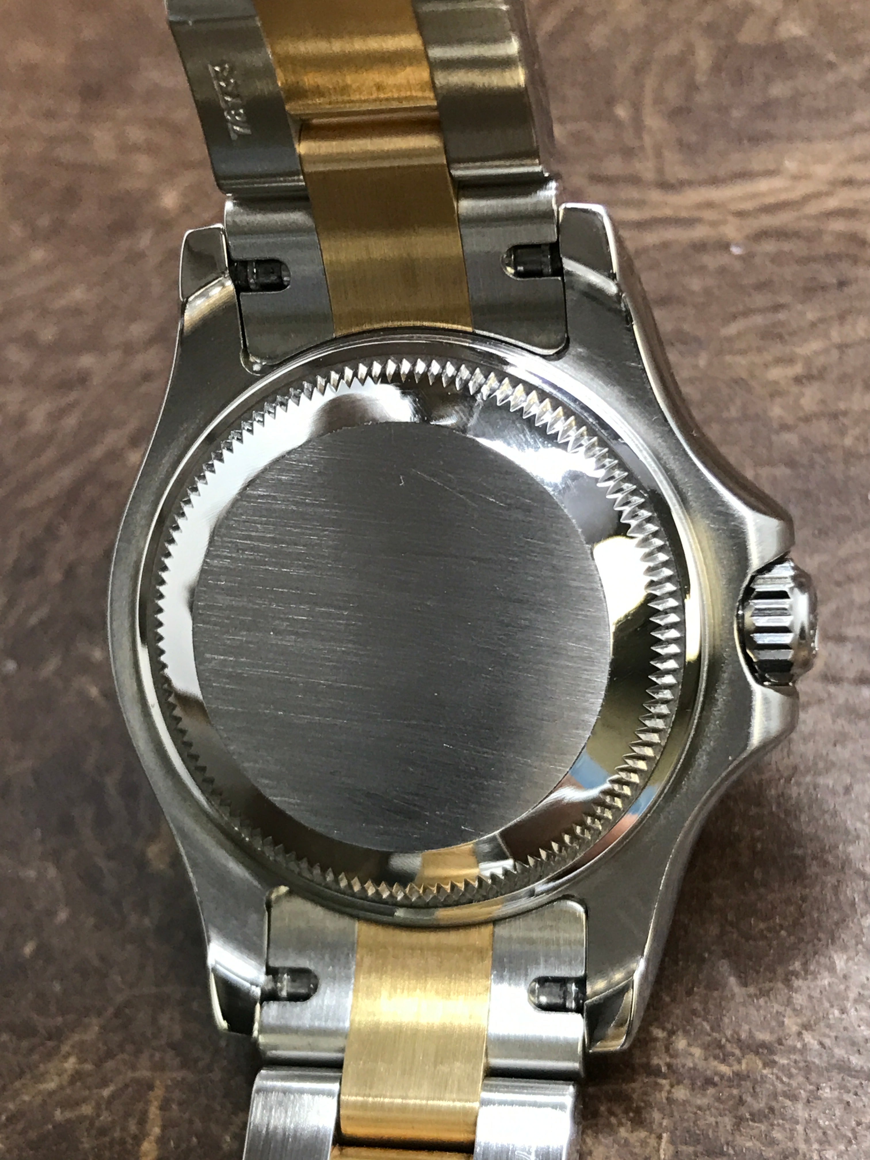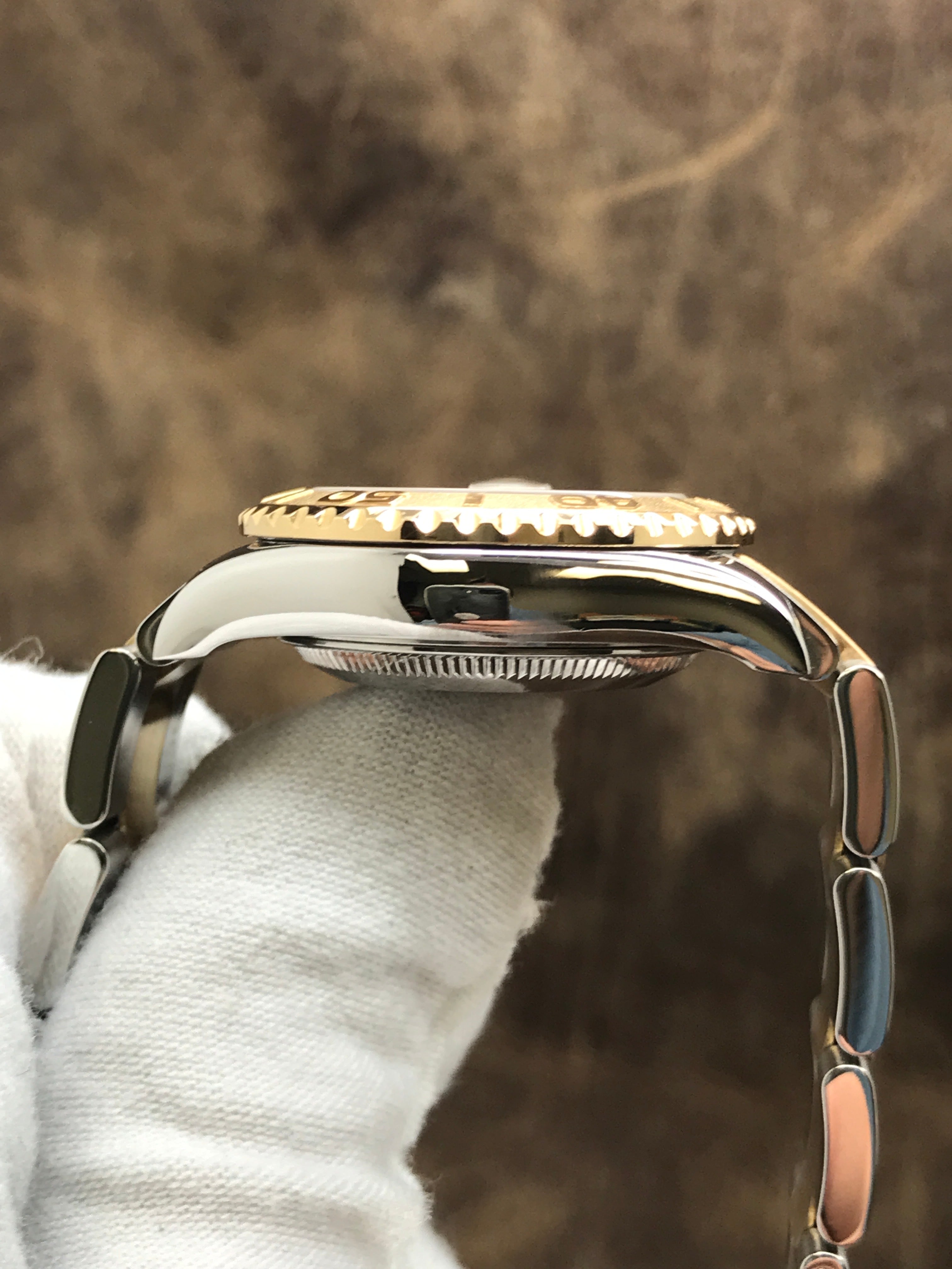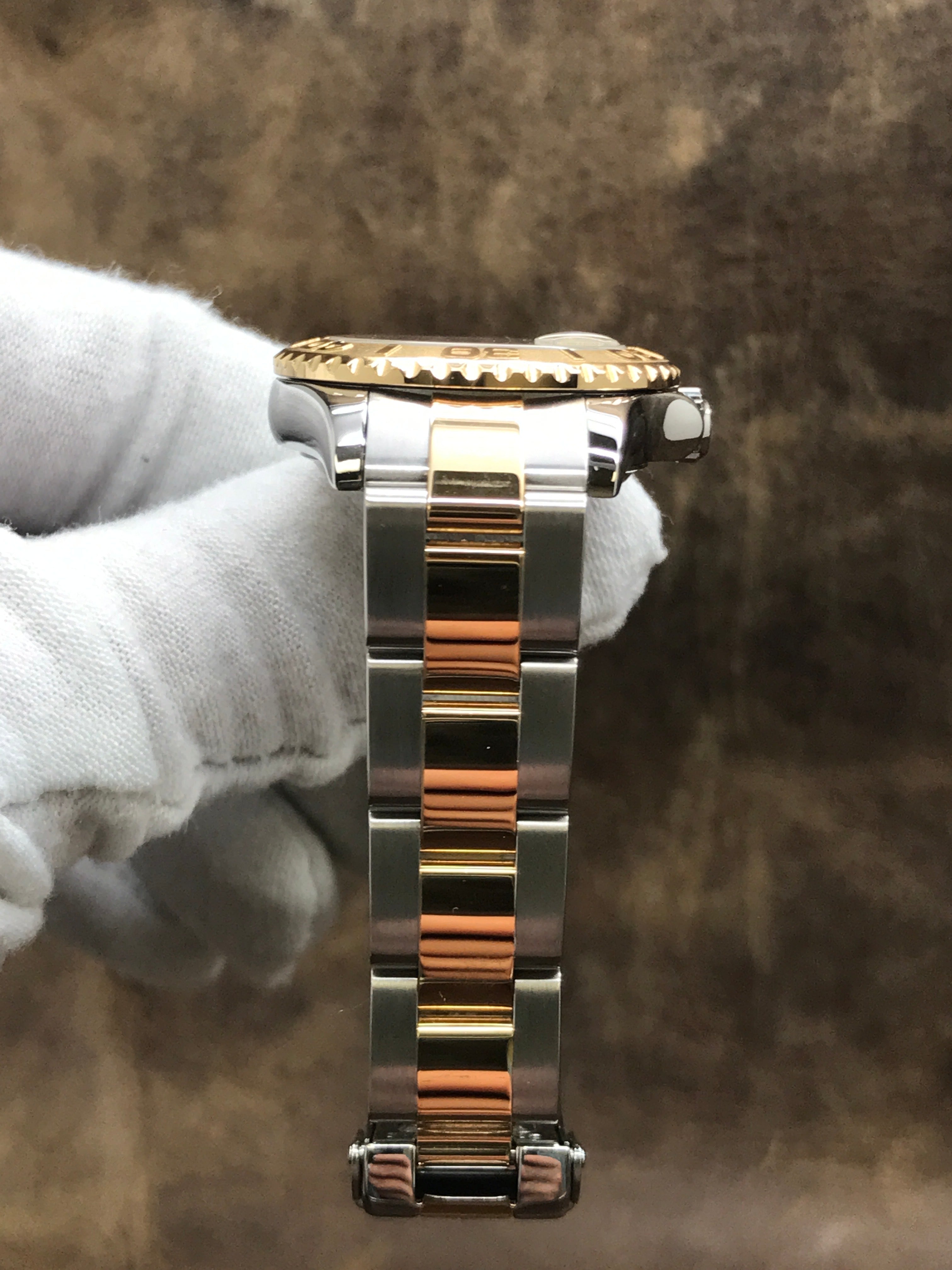 Stainless steel case with a stainless steel & 18k yellow gold bracelet. Bi-directional rotating 18k yellow gold bezel. Mother of pearl dial with luminous gold-tone hands and luminous dot hour markers. Dial type: analog. Luminescent hands and dial markers. Rolex calibre 2235 automatic movement with about 48 hours of power reserve. Sapphire crystal. Screw down crown. Solid case back. Case size: 29 mm. Case thickness: 11 mm. Round case shape. Band width: mm. Fold over clasp. Water resistant at 100 meters / 330 feet. Functions: date, hour, minute, second, chronometer. Rolex Yacht Master 29mm MOP 169623 Mother of Pearl Dial Automatic Women's Watch.