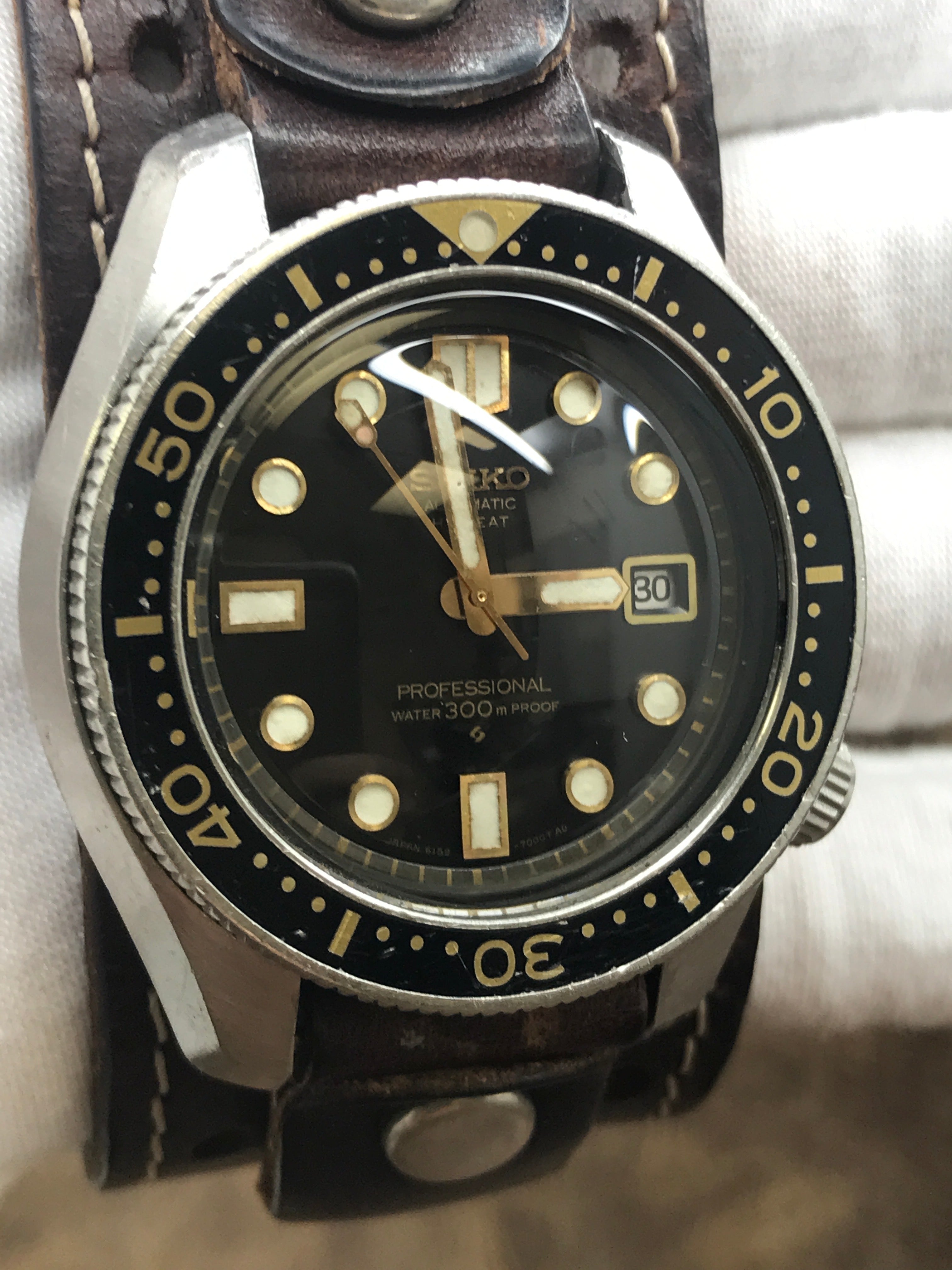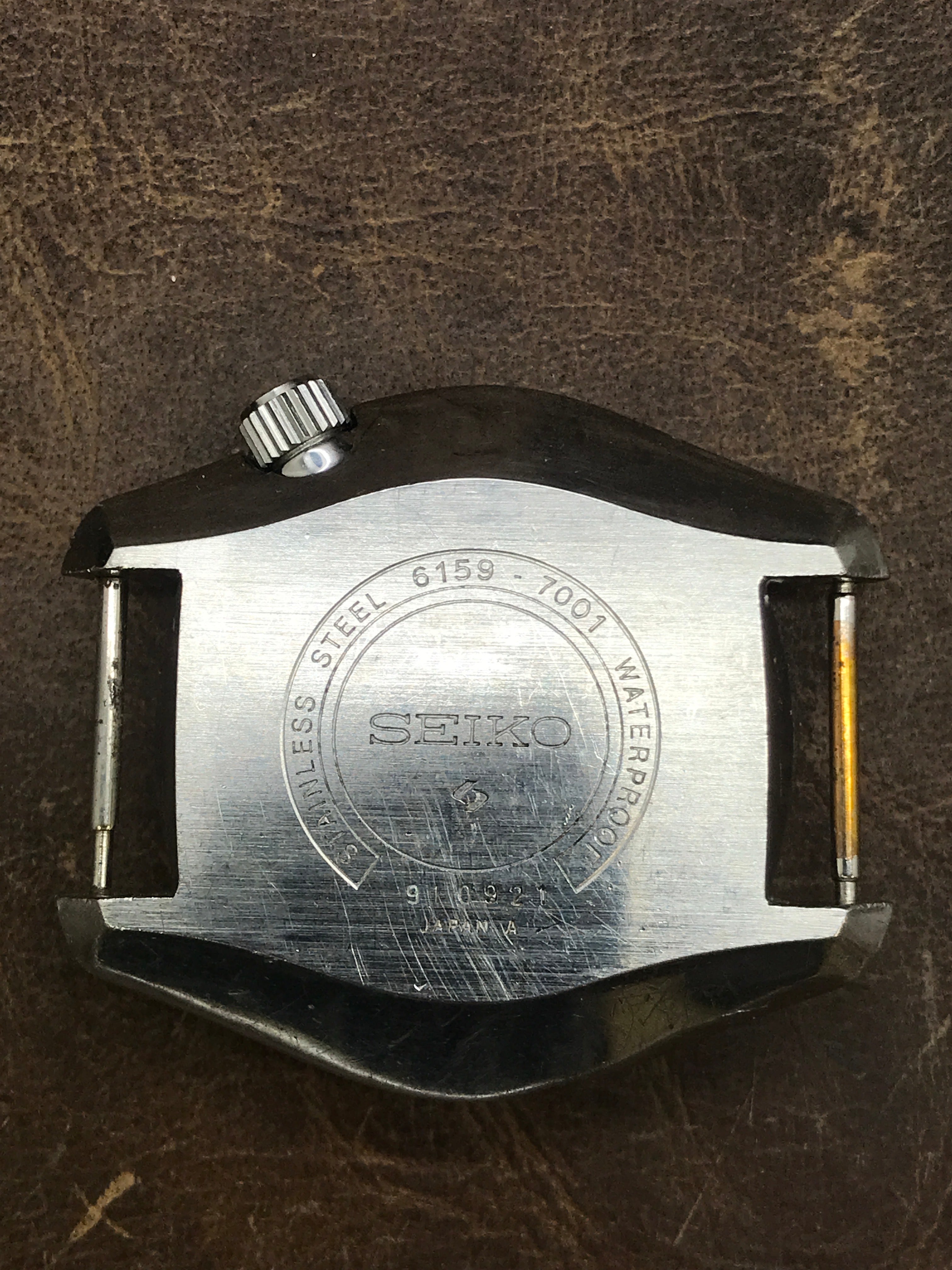 This pre-owned Seiko Professional Diver Hi-Beat 6159-7001 is in very good condition and comes with: NO box or papers. The dial has several dots between 4-7 o'clock.