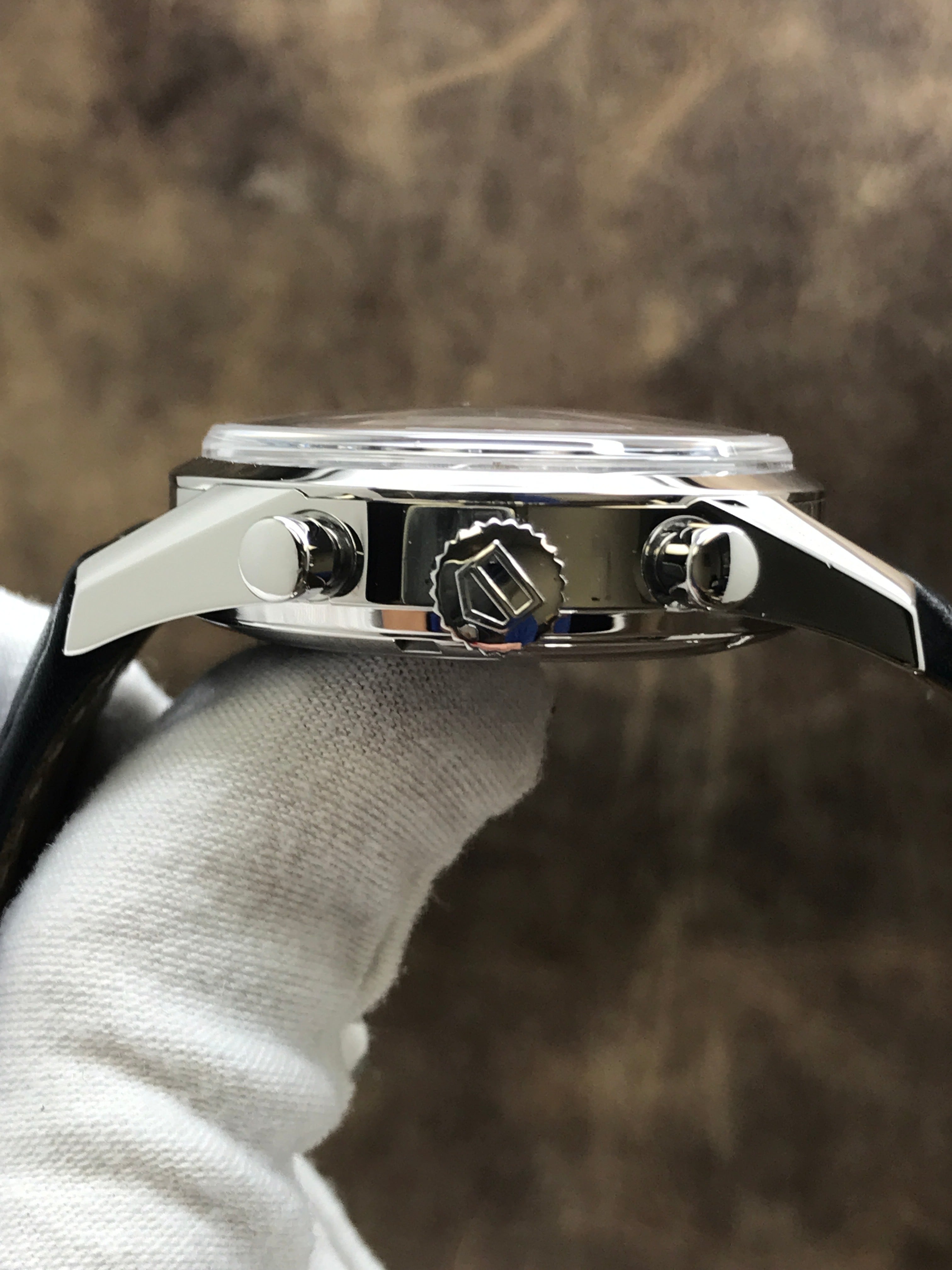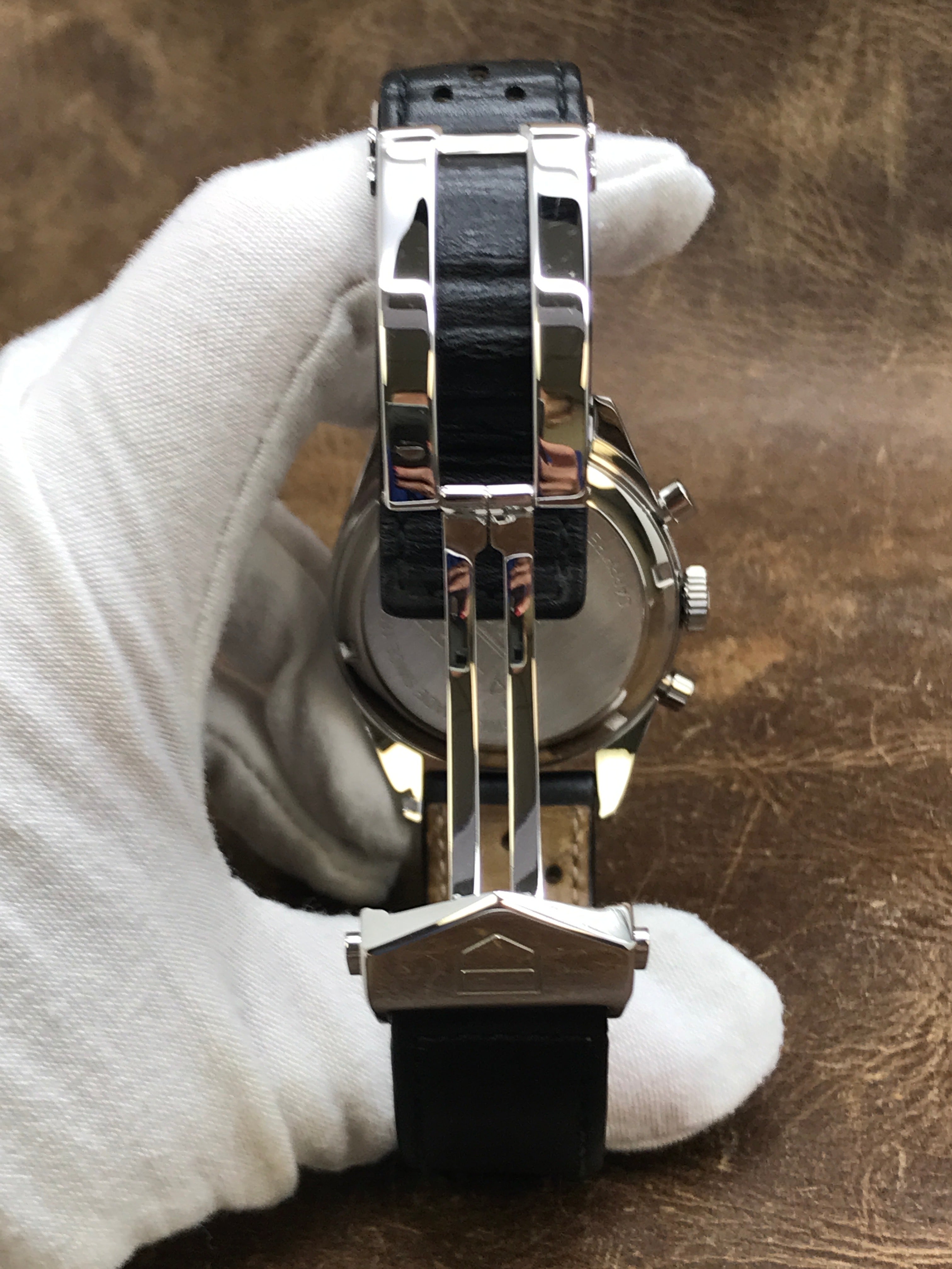 - Features Hours; minutes; seconds; date; chronograph; stainless steel; leather; strap