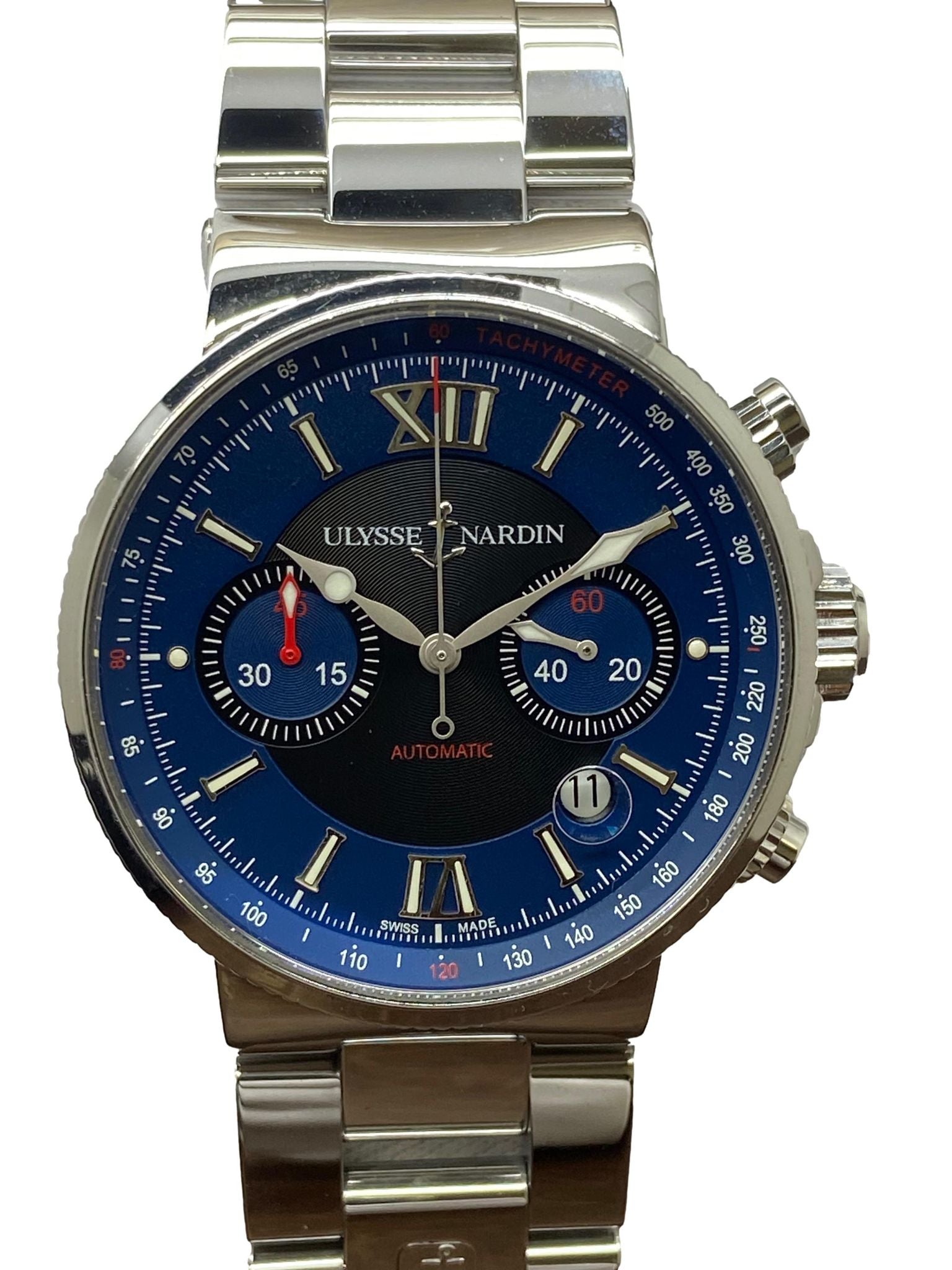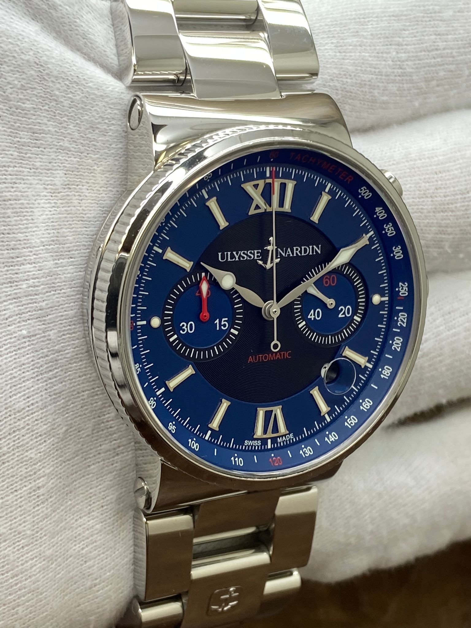 Ulysse Nardin Maxi Marine Chronograph 41mm B&P 353-66-3 Blue Dial Automatic Men's Watch