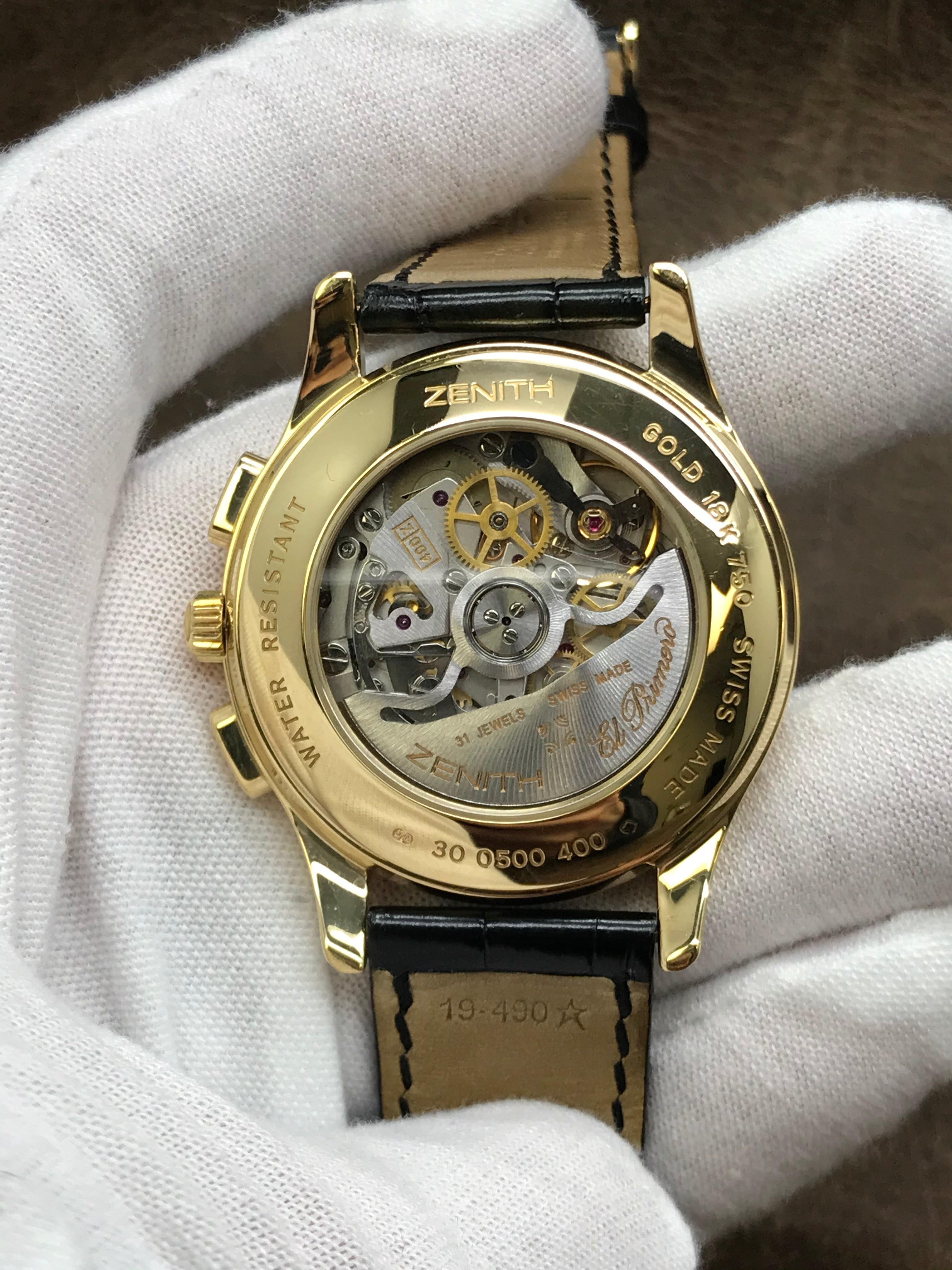 This pre-owned Zenith El Primero 30.0500.400 is in very good condition and comes with: No box or papers. Max wrist size: 8 in.